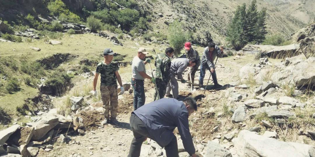 得知这一消息后,夏尔克塔斯村“两委”和工作队及时召开专题会议研究解决方案,因强格特中牧场牧道地势较为陡峭,路段狭长,不适合大型机械作业,最后决定利用人工劳动的方式对牧道进行维修。