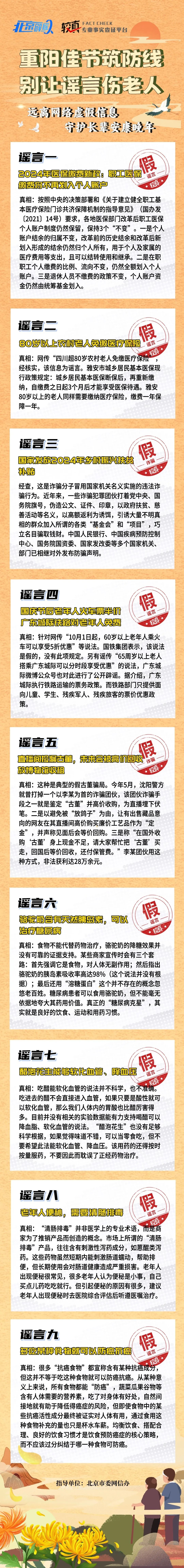 北京网络辟谣宣传月 | 这些虚假信息可能正在伤害长辈!九九重阳节护老,识别九大常见谣言
