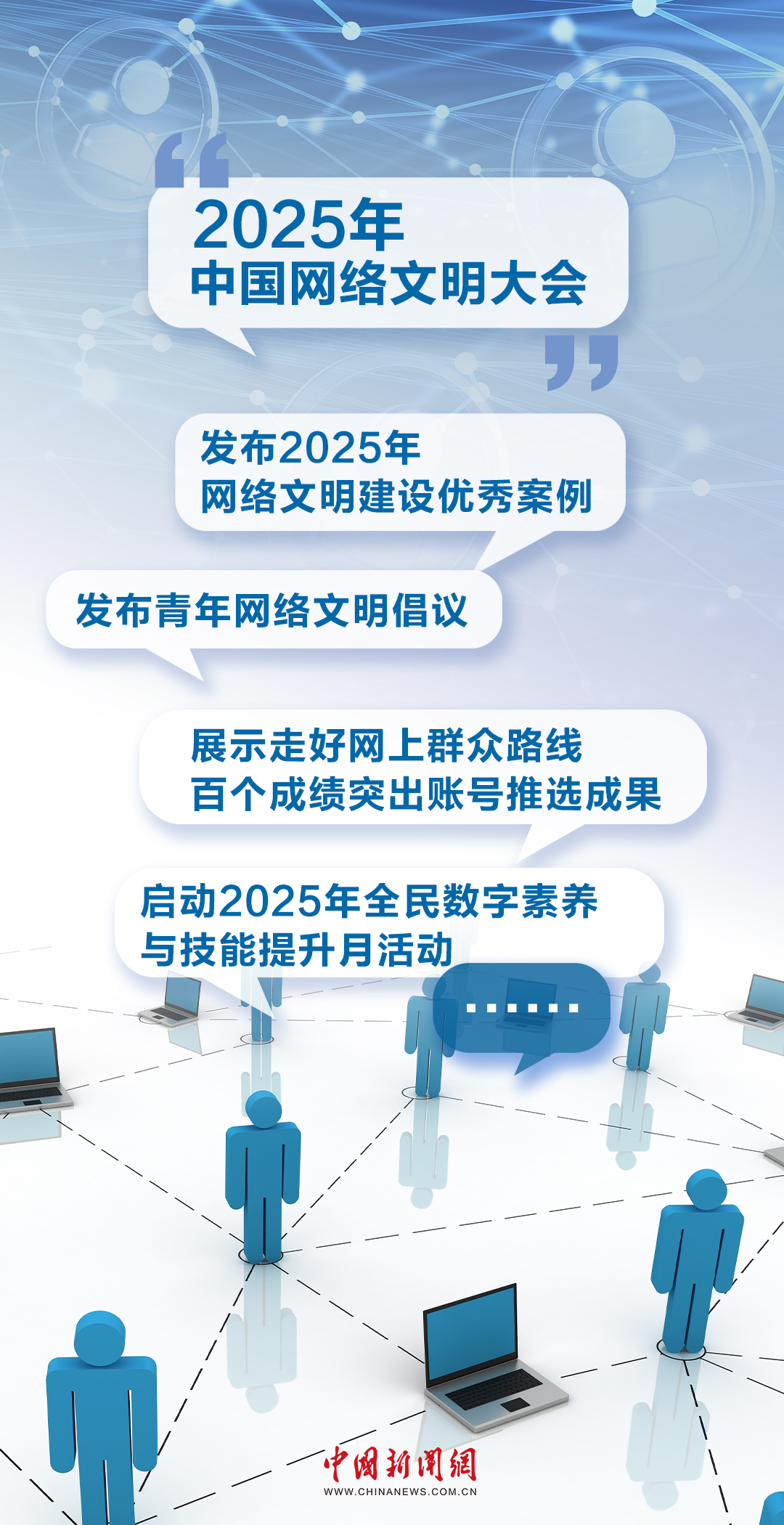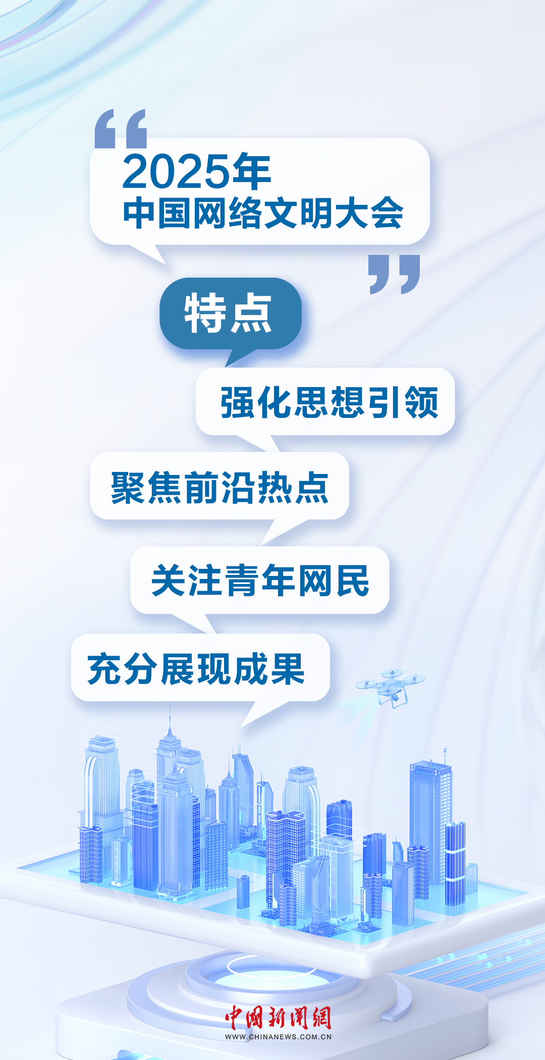 聚焦网络正能量、人工智能、数字素养等焦点话题,2025年中国网络文明大会将于6月10日至11日在安徽合肥举办。你关心的“网络文明”,这里都有答案。一组海报,带你速览2025年中国网络文明大会精彩看点。