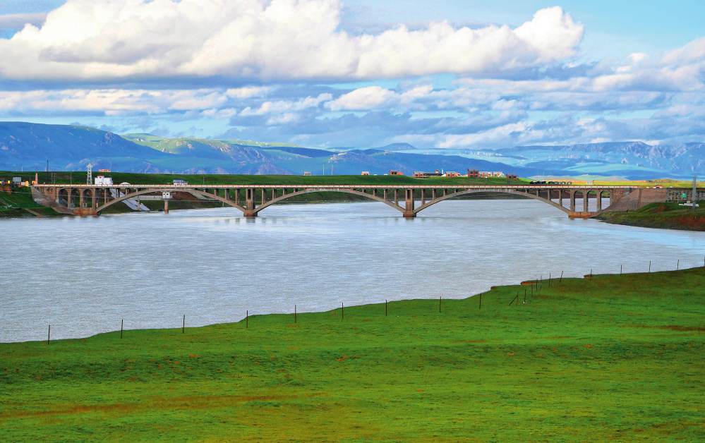 甘肃省甘南藏族自治州玛曲县城郊的黄河大桥附近的沙化退化草场已经复绿(2023 年7月6日摄) 陈斌摄 /本刊