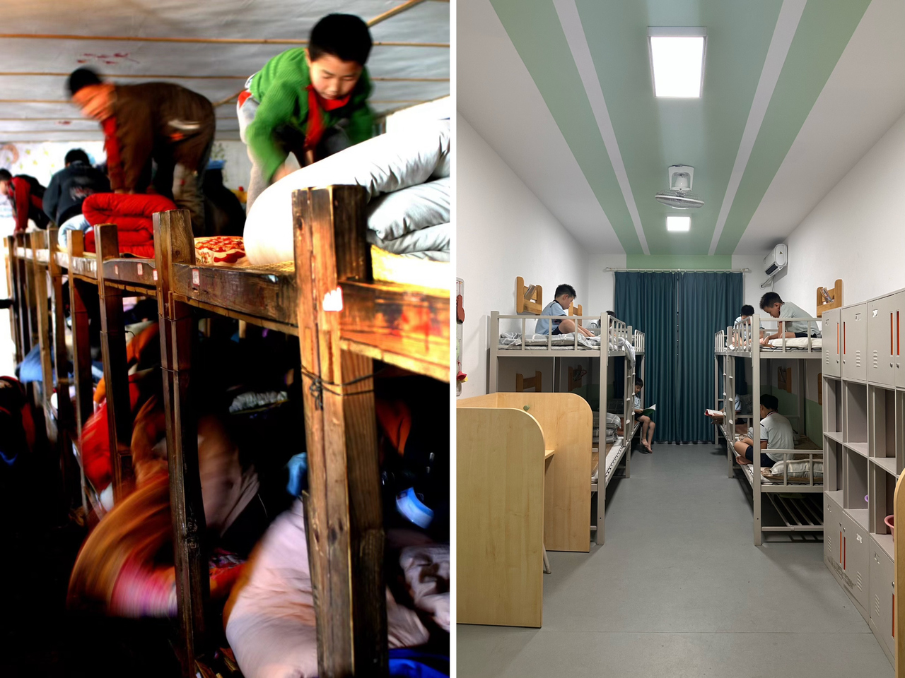 缙云县东渡镇长坑小学2005年以前的学生宿舍(左),以及现在的学生宿舍(右) 学校供图