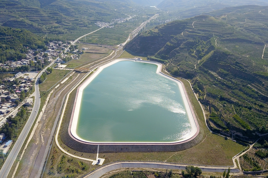 这是在天水市拍摄的已投用的天水城区引洮供水工程杨家湾调蓄水池(无人机照片)。新华社记者 范培珅 摄