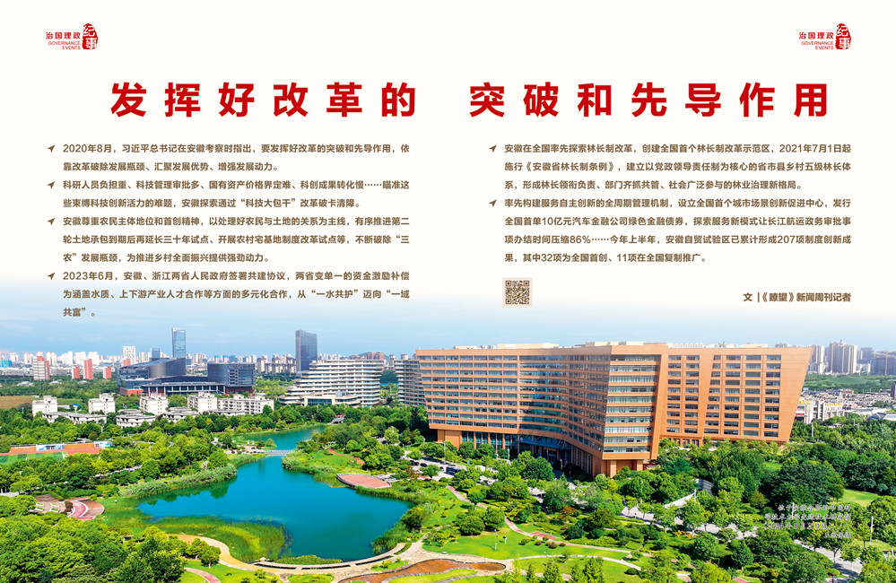 改革,是安徽最为宝贵的基因;创新,是安徽最具优势的气质。安徽贡献的不仅是小岗村一个改革地标。从当年的“农业大包干”到如今的“科技大包干”,从首个跨省流域生态补偿改革试点到先行先试构建适应新质生产力发展的新型生产关系,安徽改革创新举措迭出,备受瞩目。