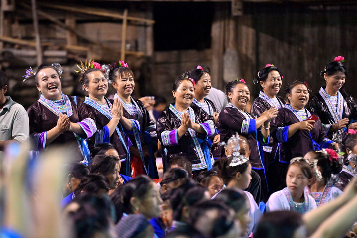 在广西融水苗族自治县杆洞乡尧告村,村民们在观看文艺演出(2024年8月13日摄)。新华社记者 黄孝邦 摄