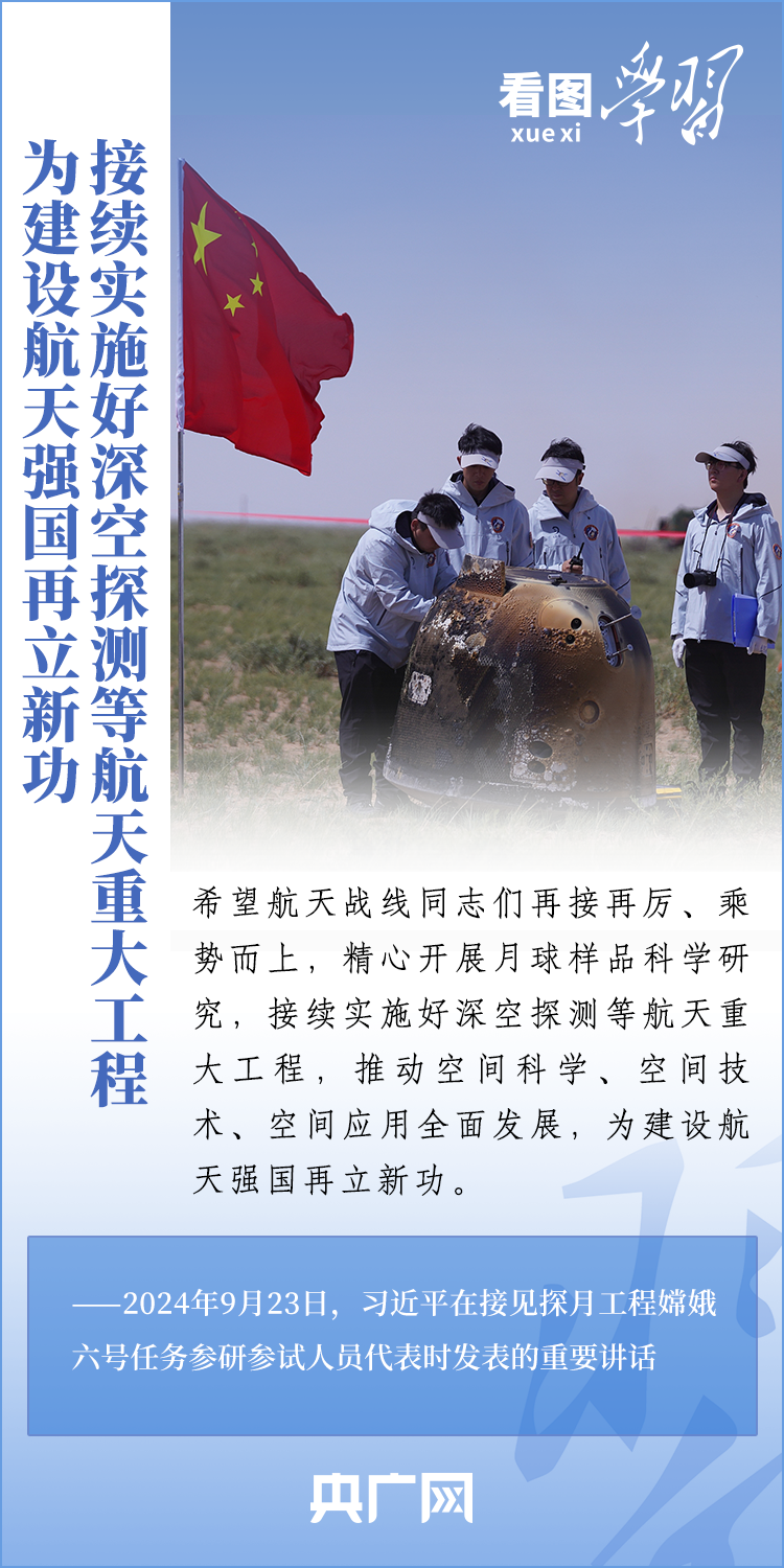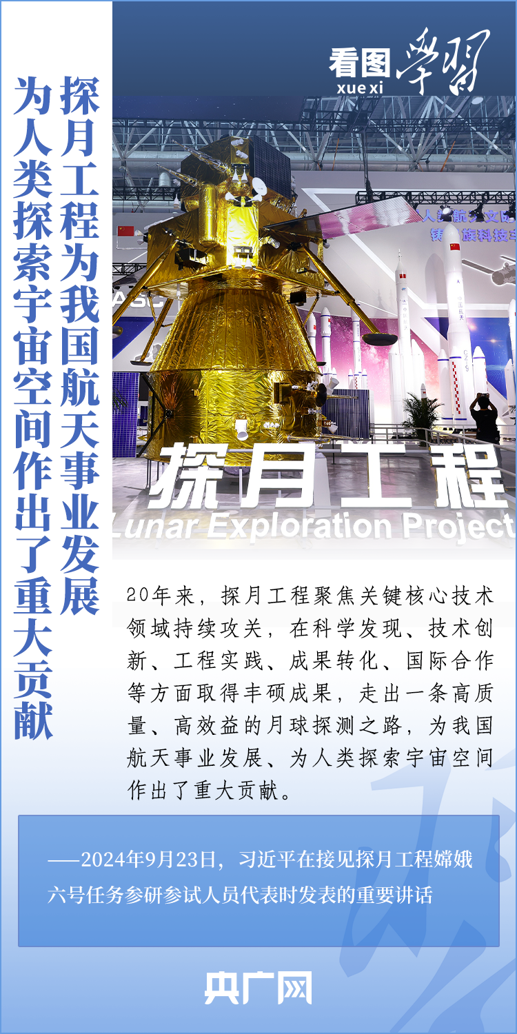 中国探月工程成果凝结着我国几代航天人的智慧和心血。9月23日,习近平总书记接见探月工程嫦娥六号任务参研参试人员代表并发表重要讲话。总书记高度肯定嫦娥六号任务成功的重要意义,以及探月工程为我国航天事业发展、为人类探索宇宙空间作出的重大贡献,勉励航天战线工作者再接再厉、乘势而上,为建设航天强国再立新功。一起来学习!