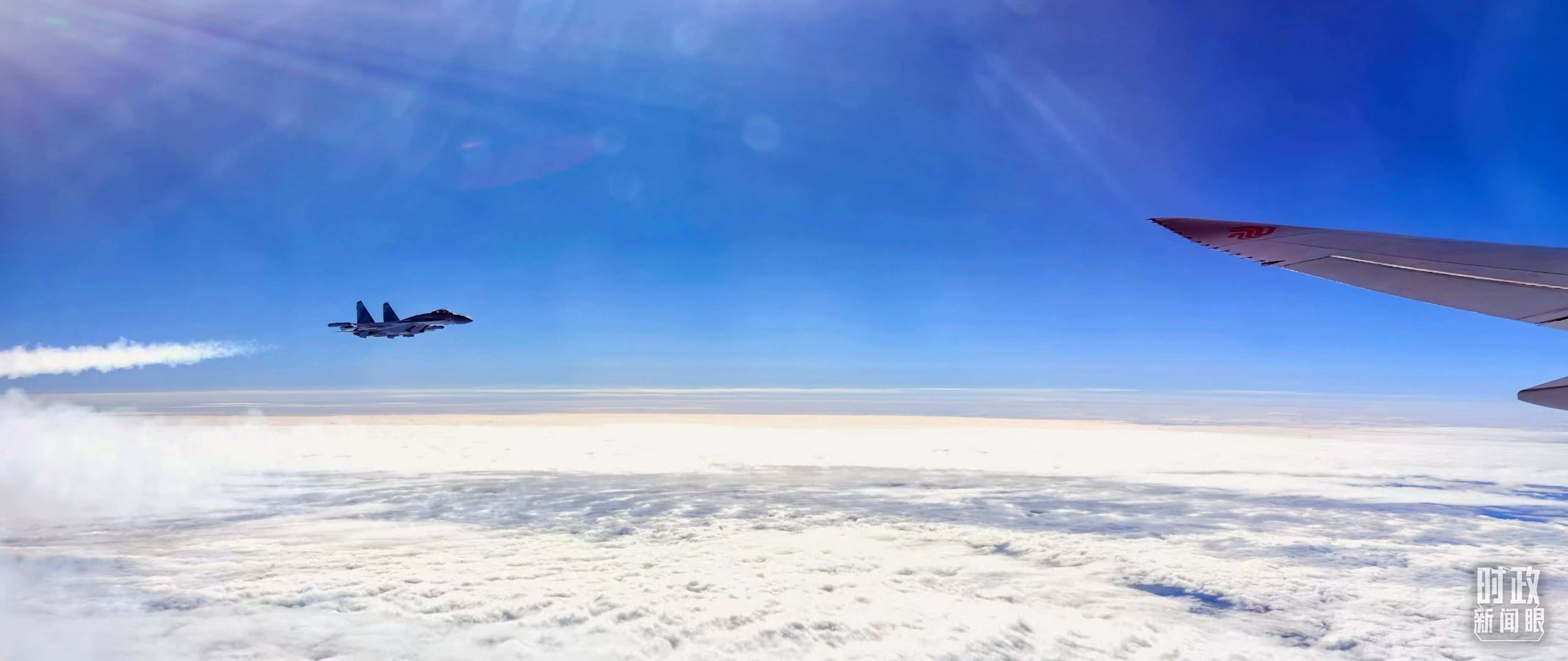 △ 习主席乘坐的专机进入俄罗斯领空时,俄空军战机升空护航。(总台央视记者李铮拍摄)