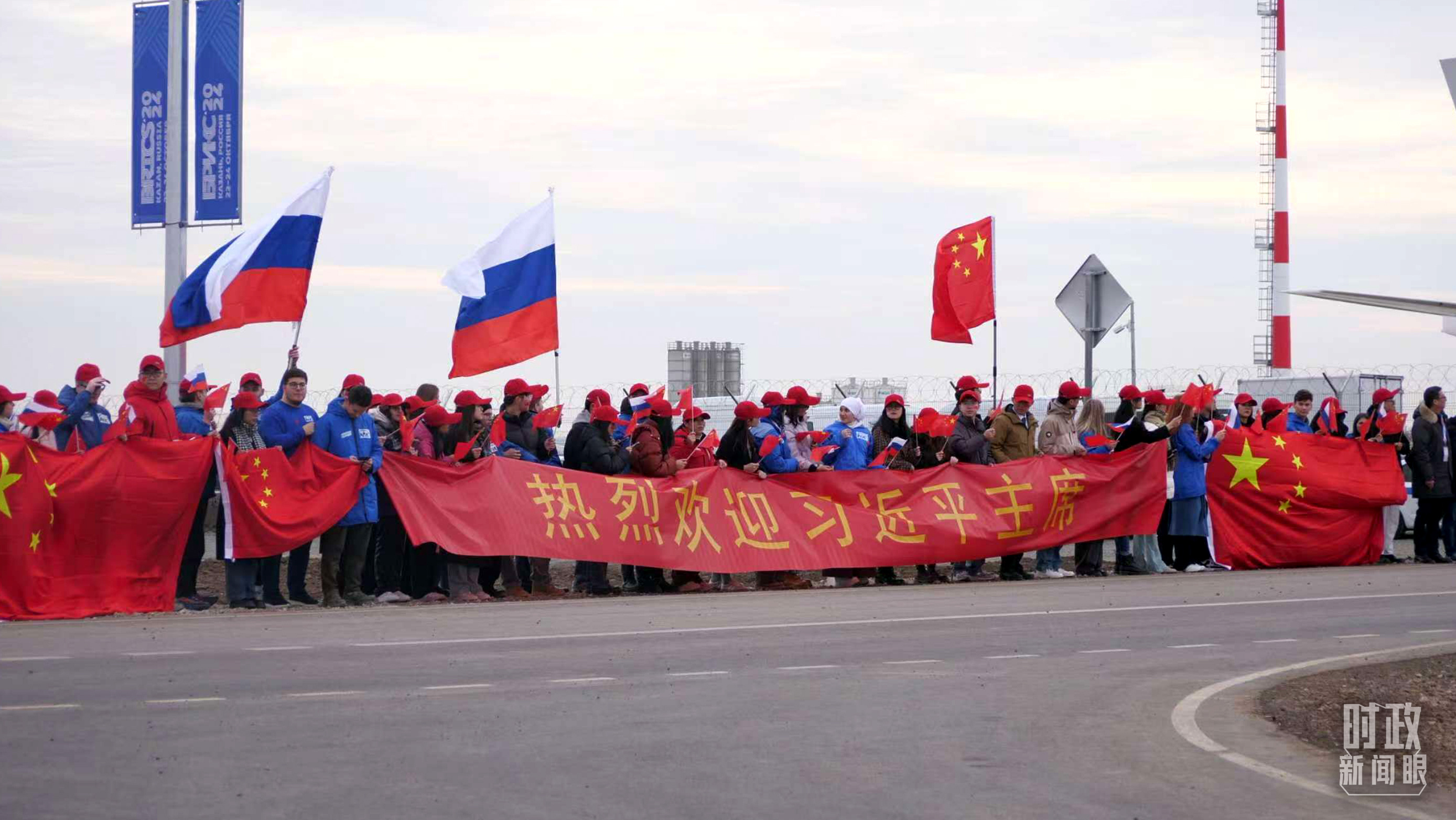 △ 俄罗斯喀山各界人士挥舞中俄两国国旗,欢迎习主席到访。(总台央视记者杨新禹拍摄)