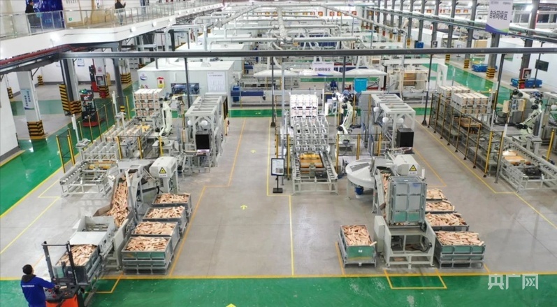 从木材分选到垛料、排版,全流程智能化;生产细节一屏可视,以销定产、共享产能……走进共享智能备料中心车间,只见生产线上机械手敏捷转身,轻巧抓取,接力完成流水化作业;智能AGV机器人在地面上穿梭往复,精准行进至目标区域;大屏幕上,生产数据实时滚动,各环节状态一目了然。“通用规格的家具配件,企业可以直接下单拿货,不同规格、尺寸,通过‘个性化’订制完成,这样一来,就能节约企业在前端备料环节的投入。”共享智能备料中心负责人刘庭告诉记者。