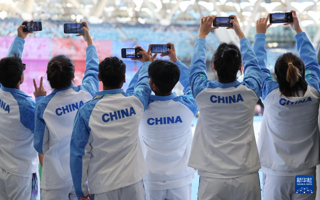 11月22日,河北省代表团运动员在开幕式前拍照留念。新华社记者 陈朔 摄