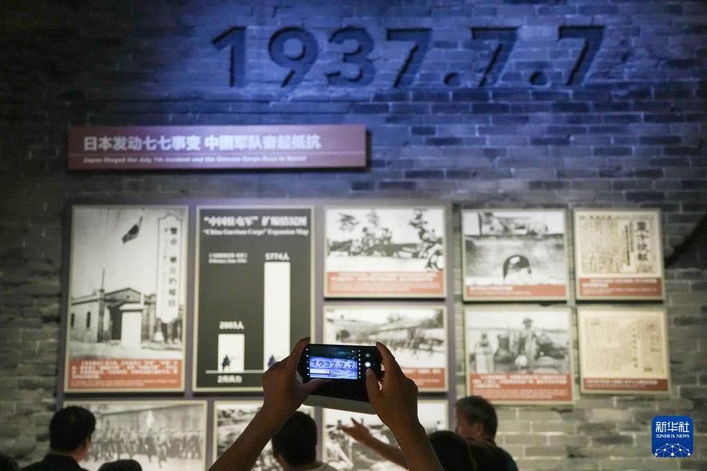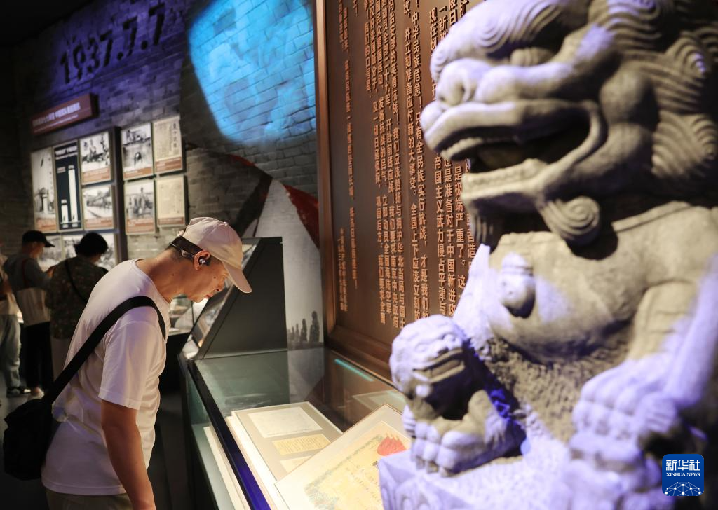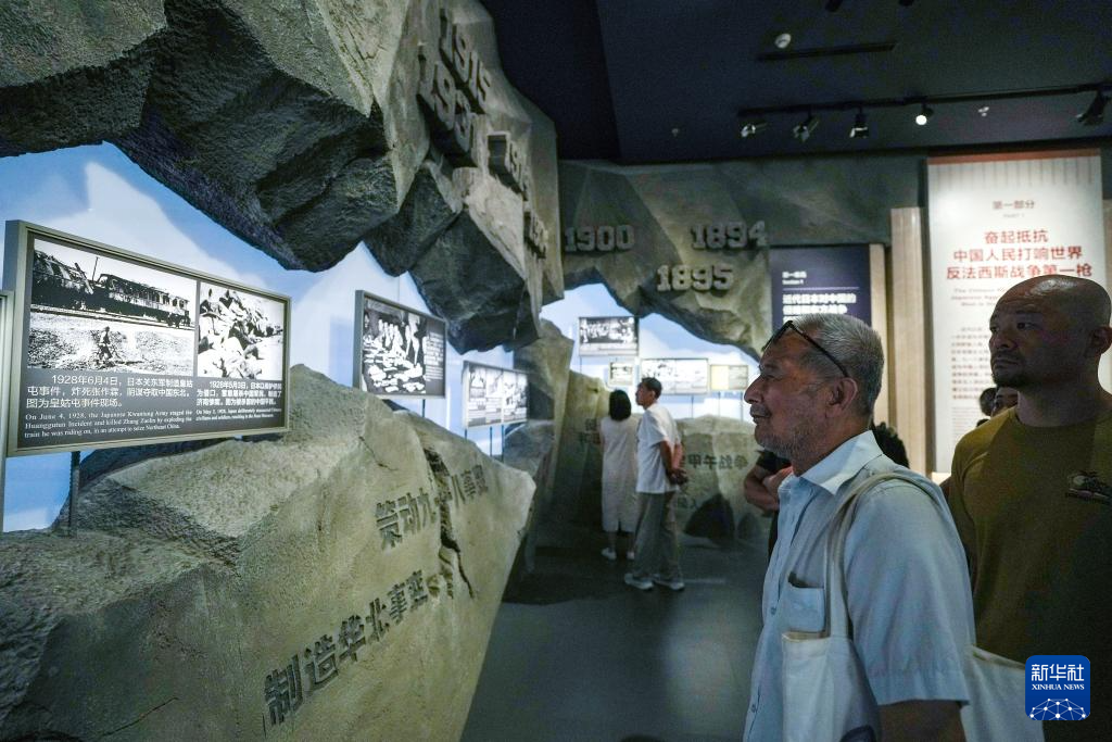 7月8日,参观者在中国人民抗日战争纪念馆参观《为了民族解放与世界和平》主题展览。新华社记者 张晨霖 摄