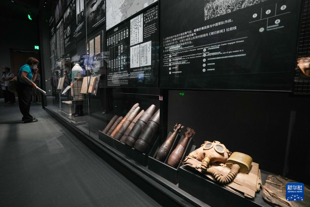 7月8日,在中国人民抗日战争纪念馆《为了民族解放与世界和平》主题展览上,参观者在展示日本侵略者实施细菌战和化学战暴行的区域参观。新华社记者 鞠焕宗 摄
