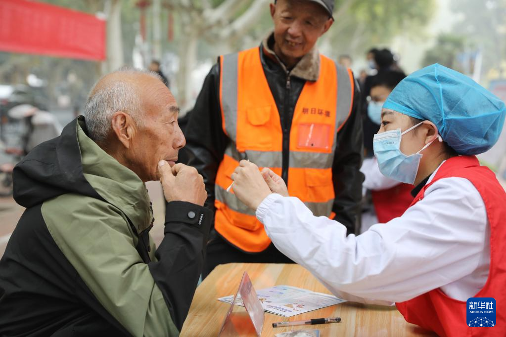 10月28日,河南省焦作市温县的医务工作者为老人义诊。新华社发(徐宏星摄)