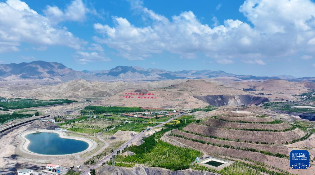 在宁夏石嘴山市大武口区石炭井,曾因过度开采而满目疮痍的矿山逐步恢复绿色“容颜”(2025年6月30日摄,无人机照片)。新华社发(袁宏彦摄)
