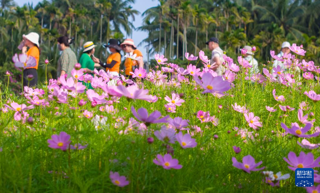 3月7日,游人在海南省琼海市博鳌镇南强村花海赏花游乐。新华社发(蒙钟德摄)