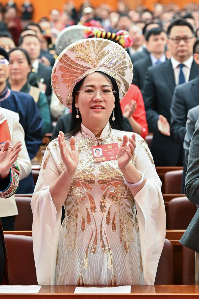 3月5日,全国人大代表金瑞瑞出席十四届全国人大四次会议开幕会。新华社记者 邢广利 摄