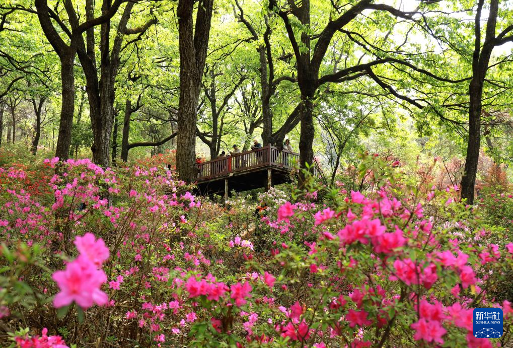 3月21日,游客在云南省昆明市盘龙区黑龙潭公园观赏杜鹃花。新华社发(郑益 摄)