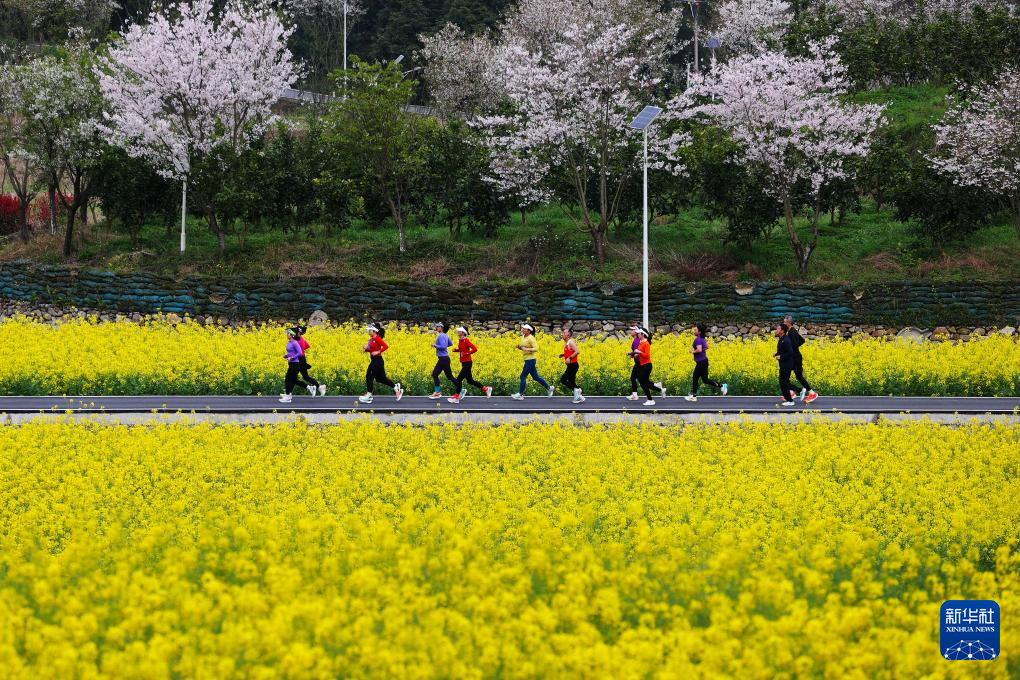 3月22日,跑步爱好者在重庆市黔江区太极镇李子村金鸡坝农业示范园区内跑步。新华社发(杨敏摄)