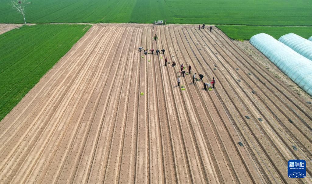 3月25日,河北省石家庄市行唐县南桥镇农民在田间种植生姜。新华社记者 杨世尧 摄