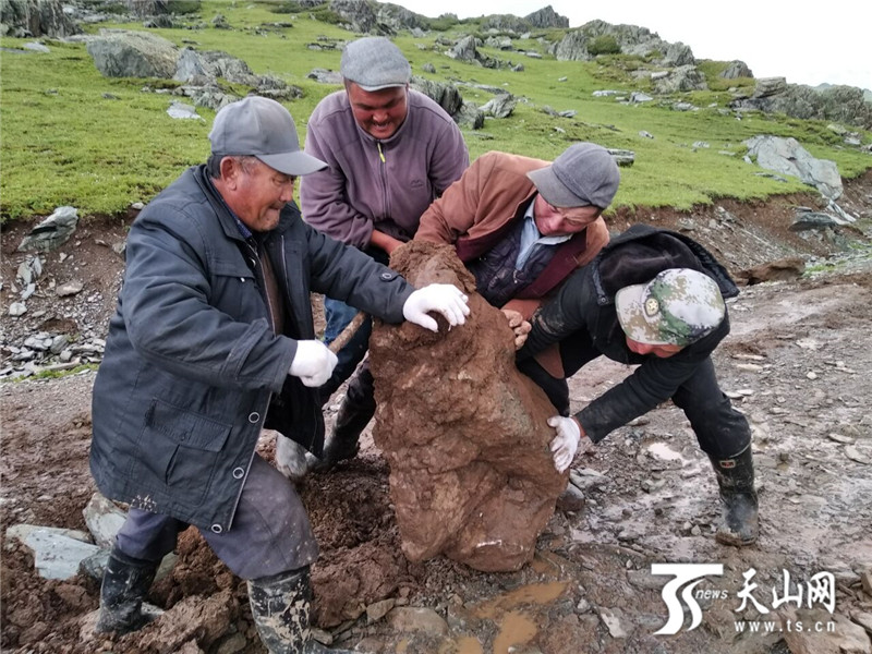 “牧道抢修队”齐心协力移走牧道上的大石。
