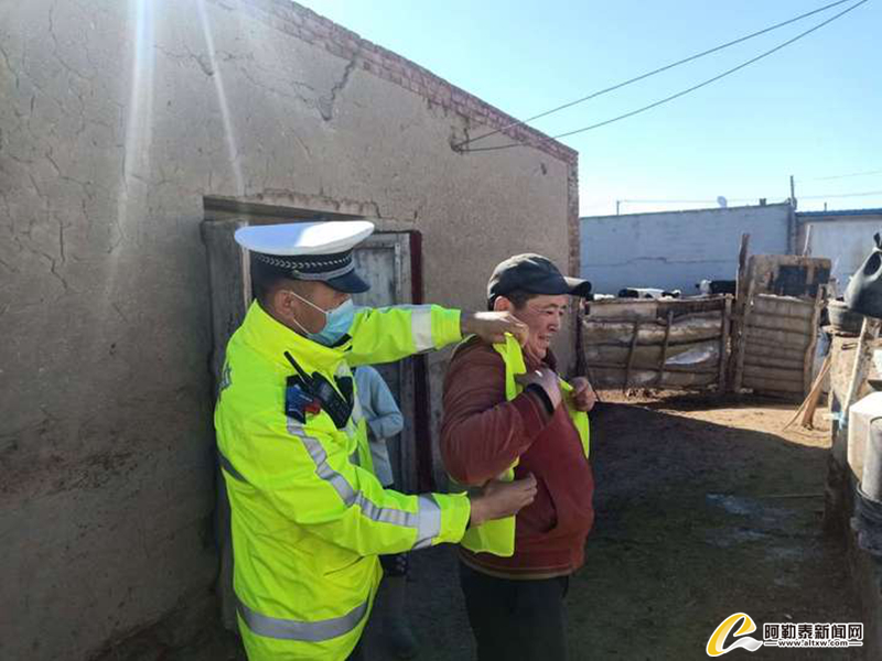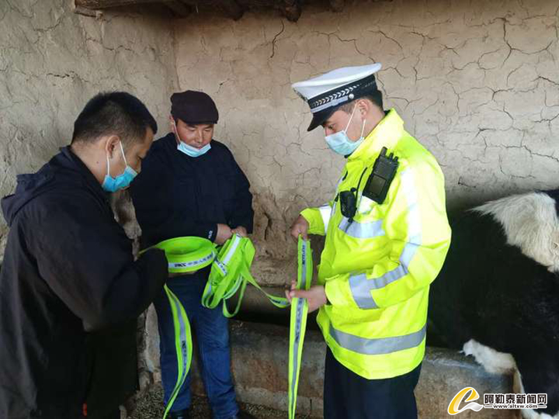 截至目前,阿勒泰市公安局交警大队给牲畜绑系反光带2000余条,为牧民发放反光衣120件,给农牧民的生命财产安全上了一道安全锁,确保辖区道路安全有效畅通。