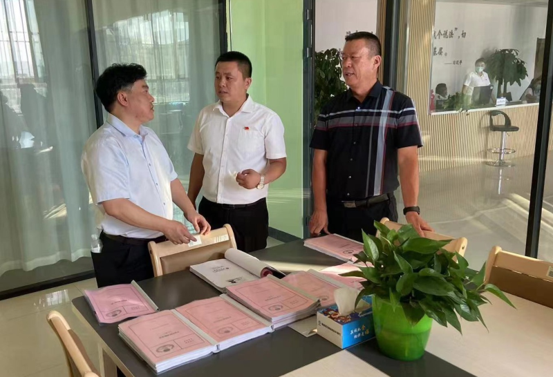 8月7日,杭州师范大学枫桥经验与法治建设研究中心主任、西北政法大学枫桥经验与社会治理研究院副院长余钊飞(左一)在福海县委副书记、政法委书记薛磊(右一)陪同下,在该县喀拉玛盖镇综治中心调研市域社会治理现代化工作。通讯员郭用斌摄