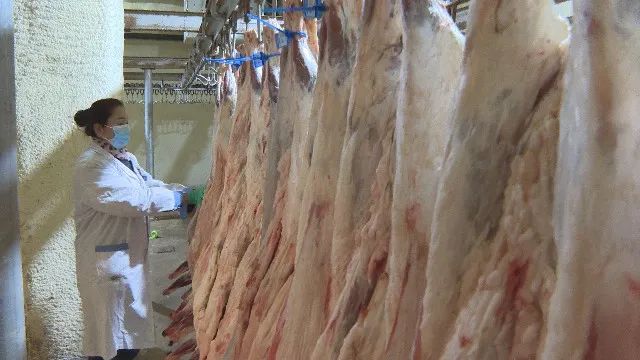 福海县农业农村局动物检疫检验员朱玛别克·卡斯勒汗说:“从牛羊的选择到屠宰,整个过程我们都进行全程监督,通过各项监测,严把牛羊屠宰关,决不允许有任何不合格牛羊肉上市。”