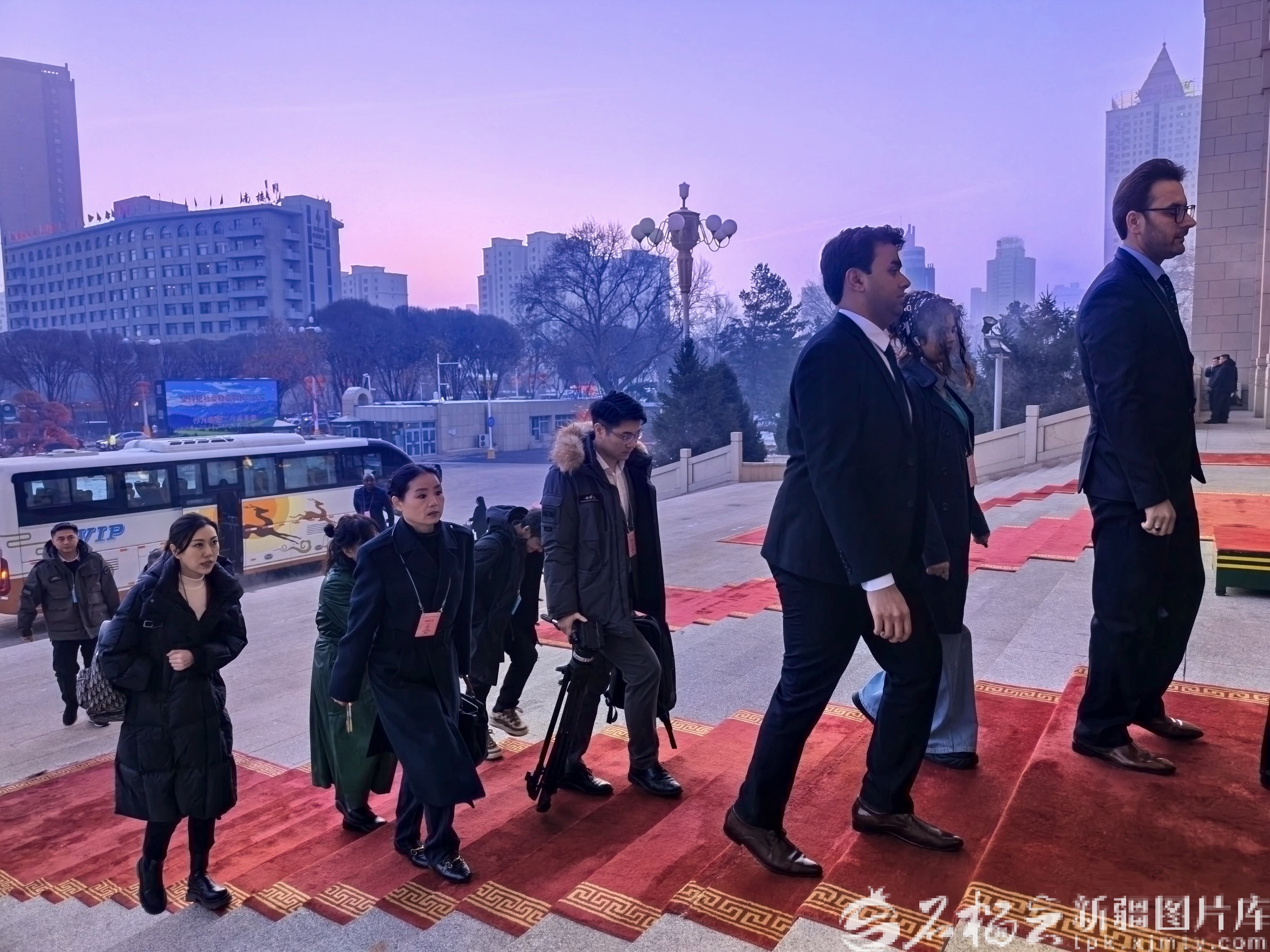 1月27日,自治区十四届人大四次会议在新疆人民会堂开幕。这是受邀嘉宾与外媒记者步入会场。天山网-新疆日报记者 蔡增乐摄