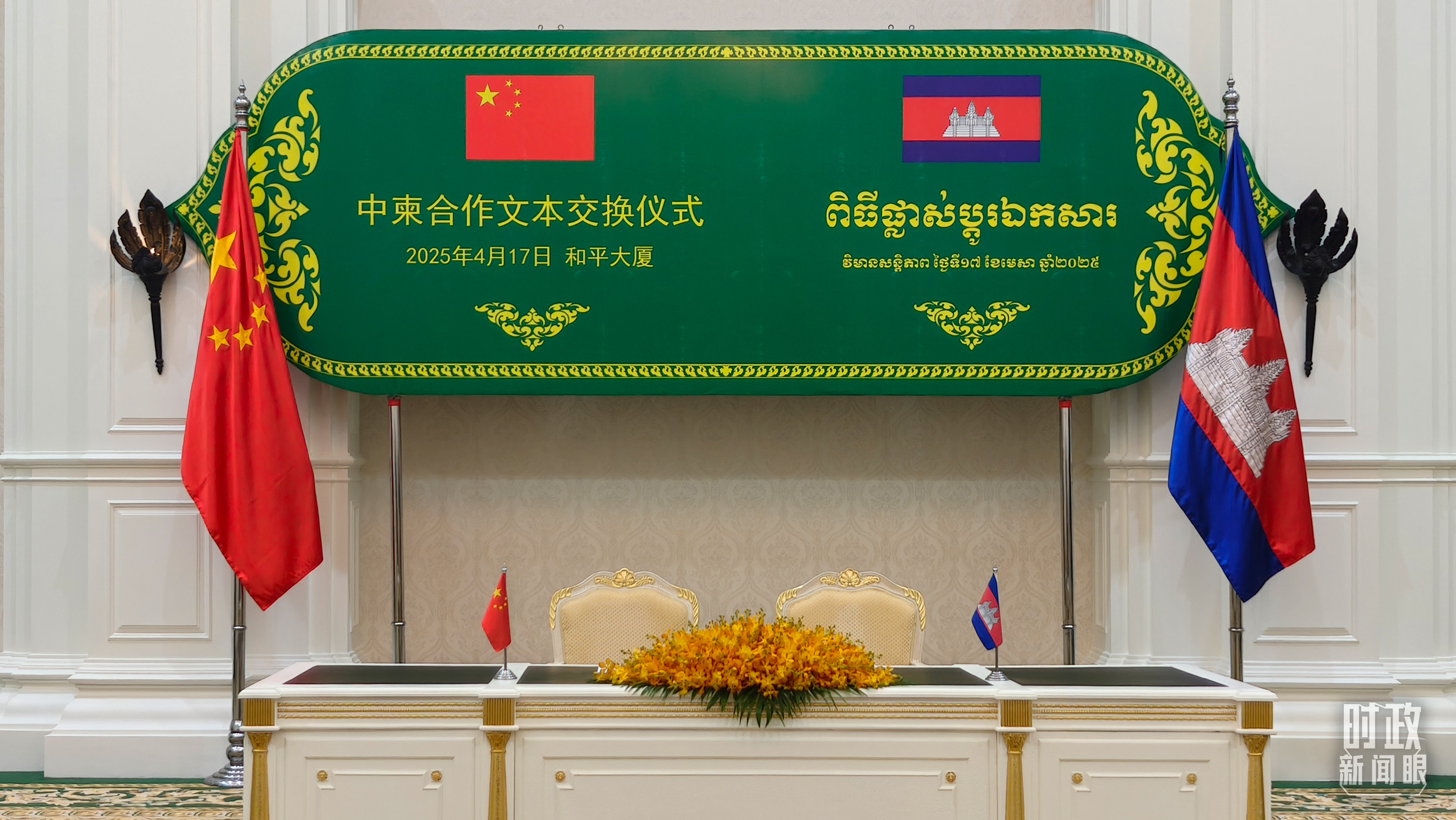 △中柬合作文本交换仪式现场。(总台央视记者杨立峰拍摄)