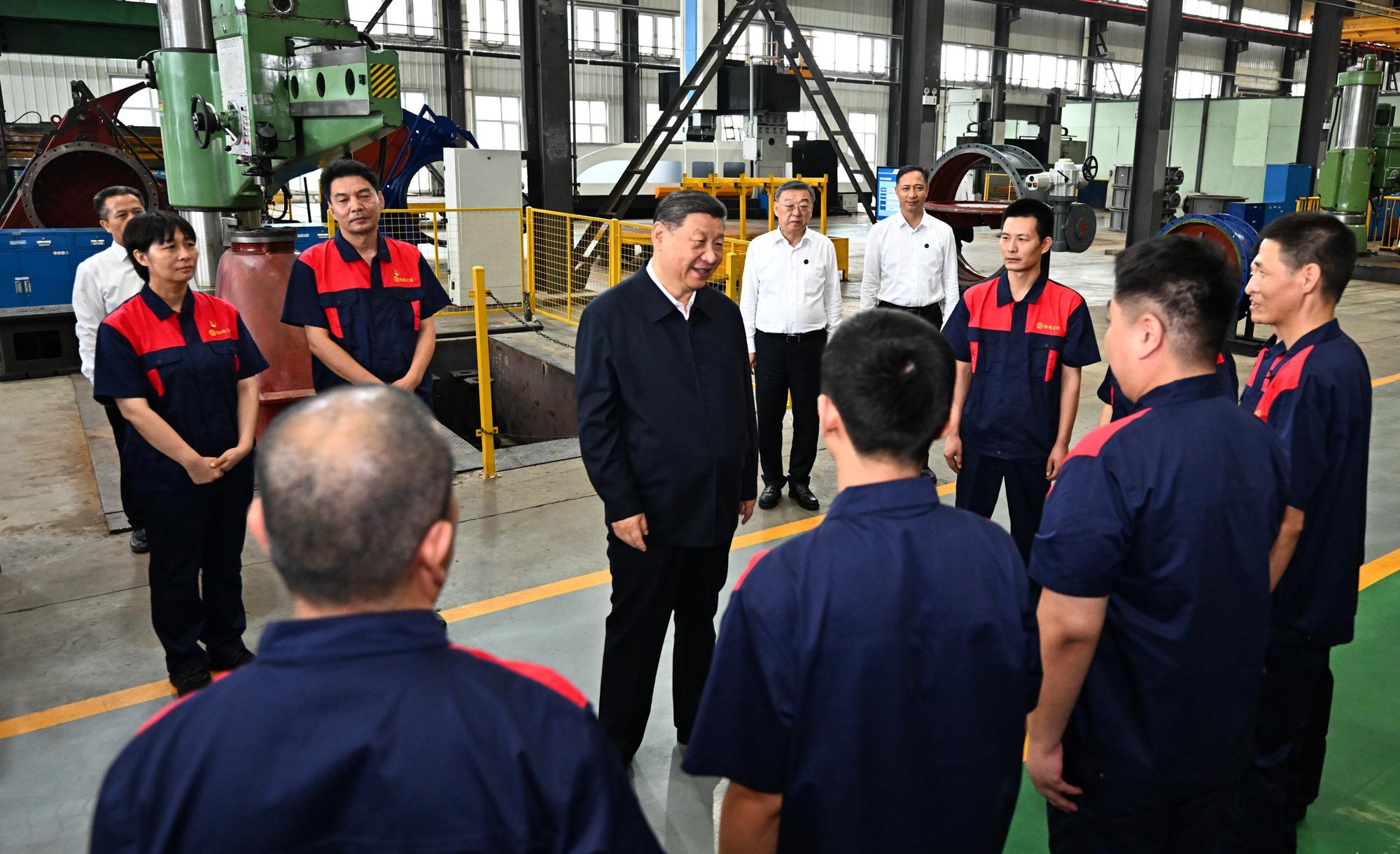 今年7月,习近平总书记来到这里考察调研。他走进企业生产车间,详细了解煤气闸阀、电动翻板阀等产品生产和销售情况。总书记指出:“实体经济不能丢,实体经济里边的传统产业不能丢,要通过科技创新实现转型升级。”他鼓励企业员工“再接再厉、更上层楼,为建设制造强国多作贡献”。
