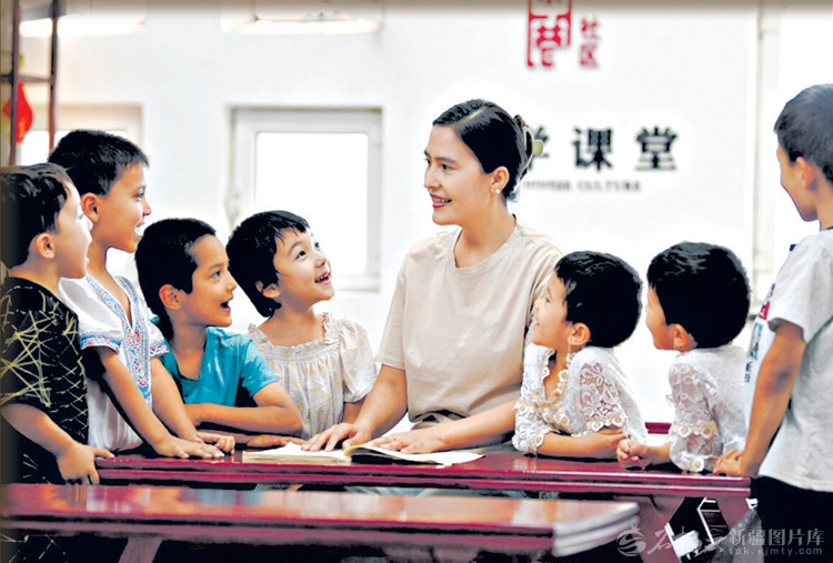 2025年7月8日,孩子们在乌鲁木齐市天山区二道桥街道固原巷社区暑假小课堂学习诗词。本报资料图