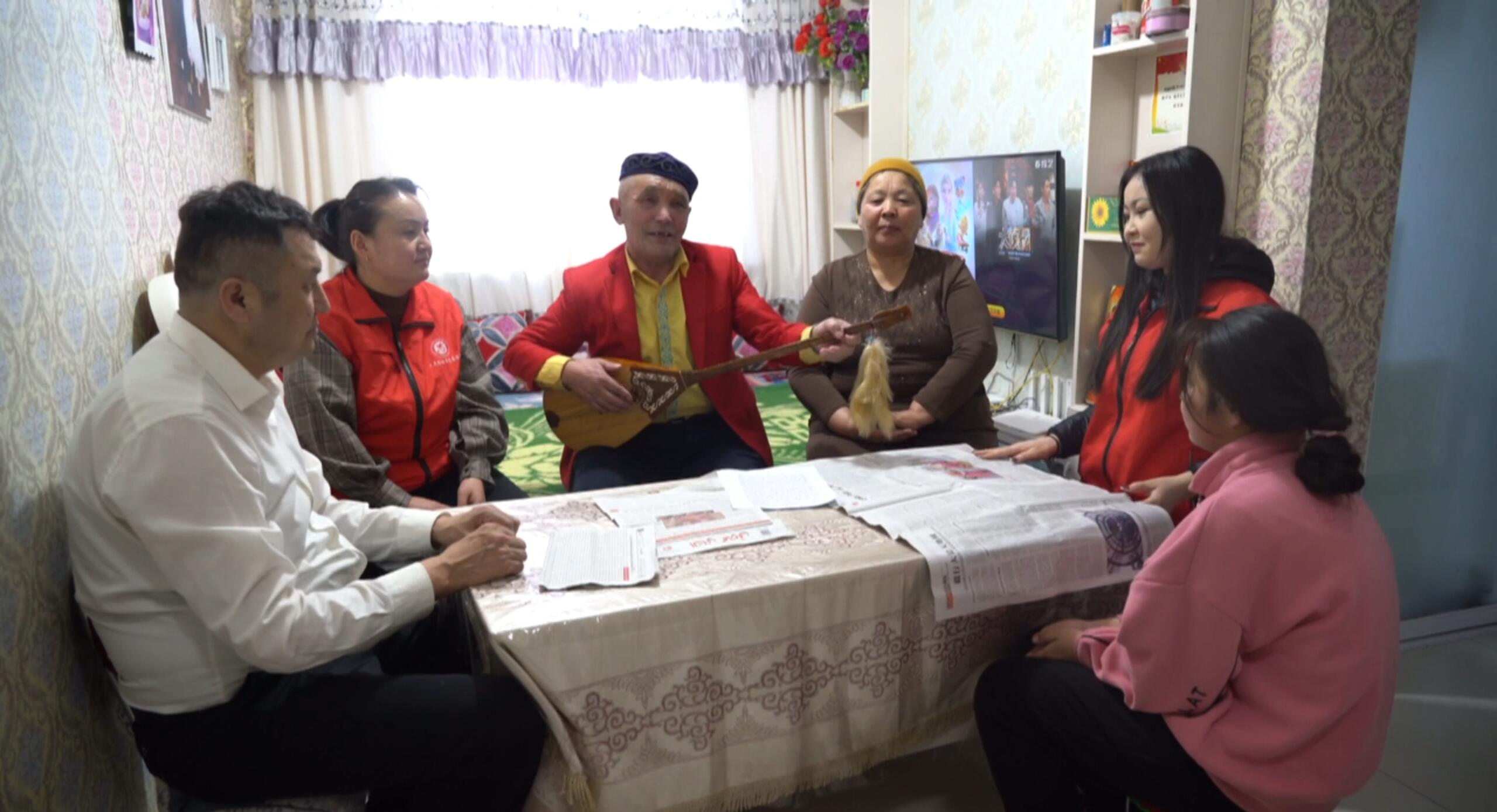 吉木乃县冬不拉小分队用接地气的语言,弹唱党的惠民政策和幸福生活。