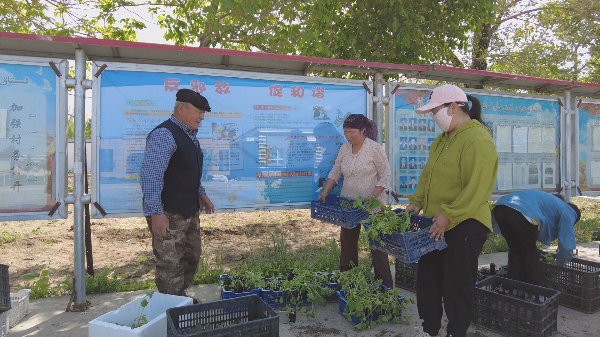 当天,福海县解特阿热勒镇阿勒尕村村委会院内,该村“访惠聚”驻村工作队及村两委一起为村民免费发放茄子、辣子、豇豆、西红柿等蔬菜苗1万余棵,价值7000余元。为确保菜苗顺利移栽,还专门邀请农业技术员帮助村民平整菜地、铺地膜,手把手教村民种菜,既保证了菜苗质量,又发展了庭院经济。福海县解特阿热勒镇阿勒尕村民玛迪娜·阿德力别克说:“我今天去村里领了免费的菜苗子,回来之后直接种在了自己院子里。非常感谢村里对我们的关心和支持,也非常感谢党和国家的好政策。”