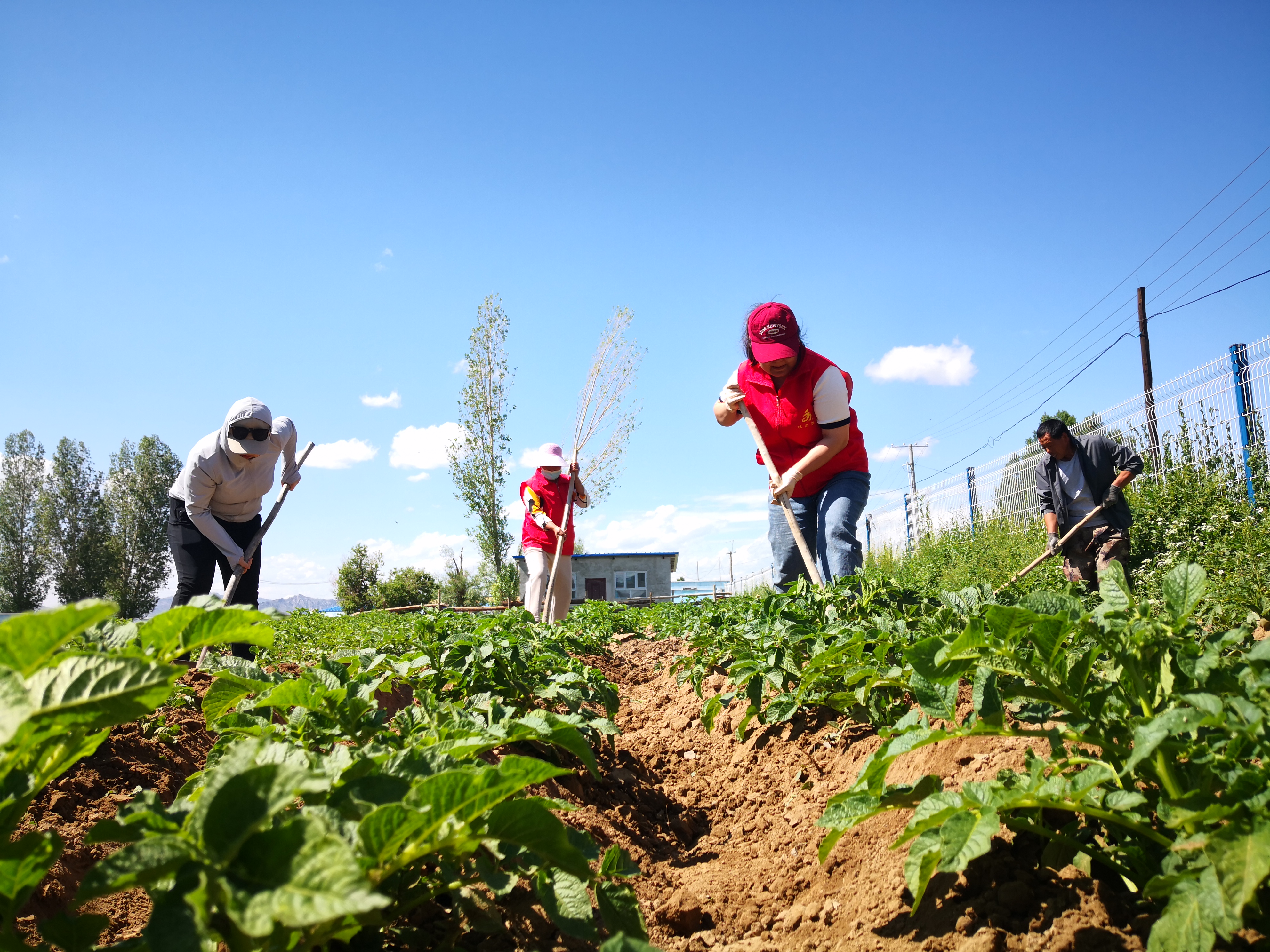 驻村工作队联合村“两委”帮助村民为种植土豆封沟。