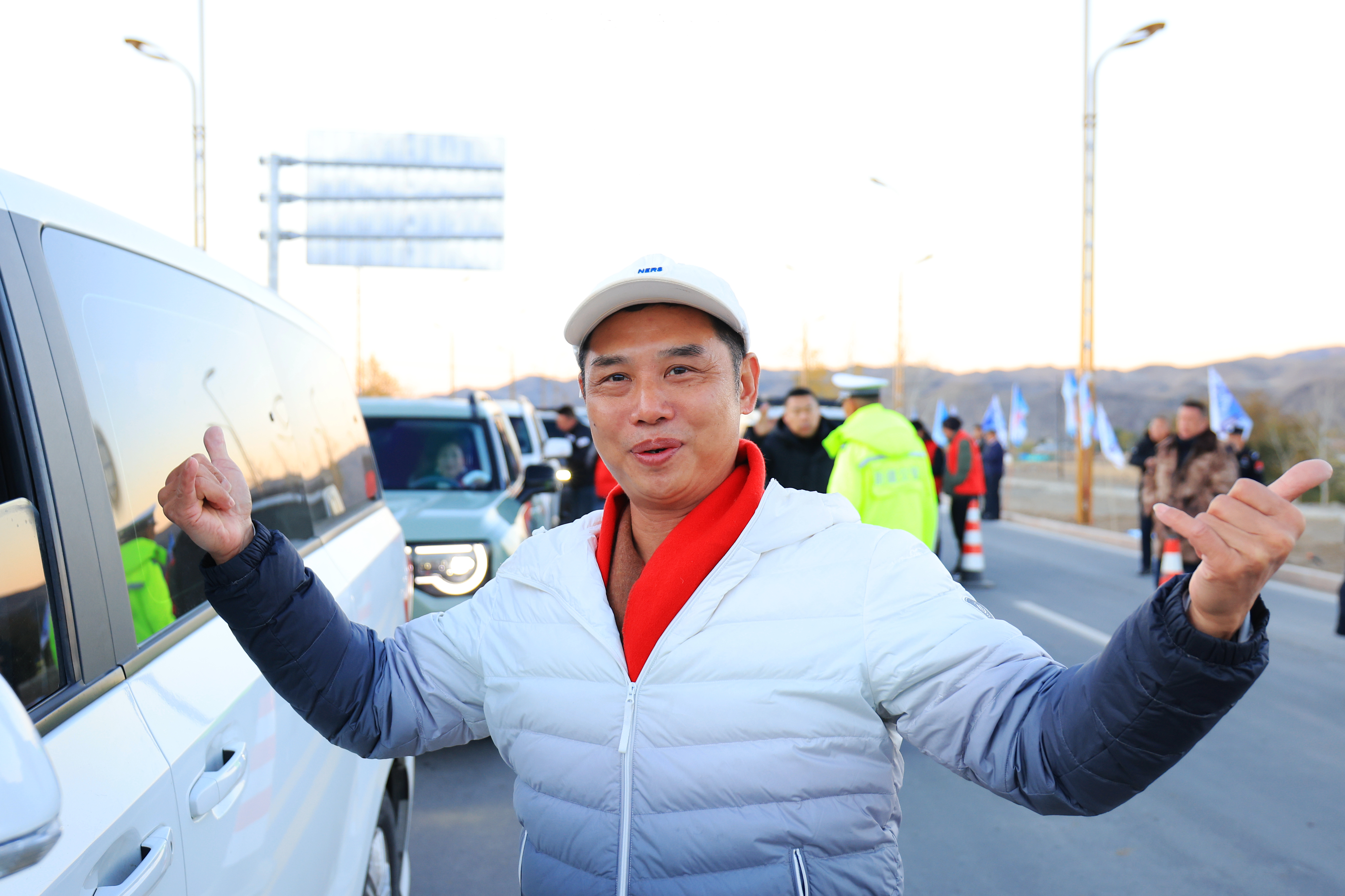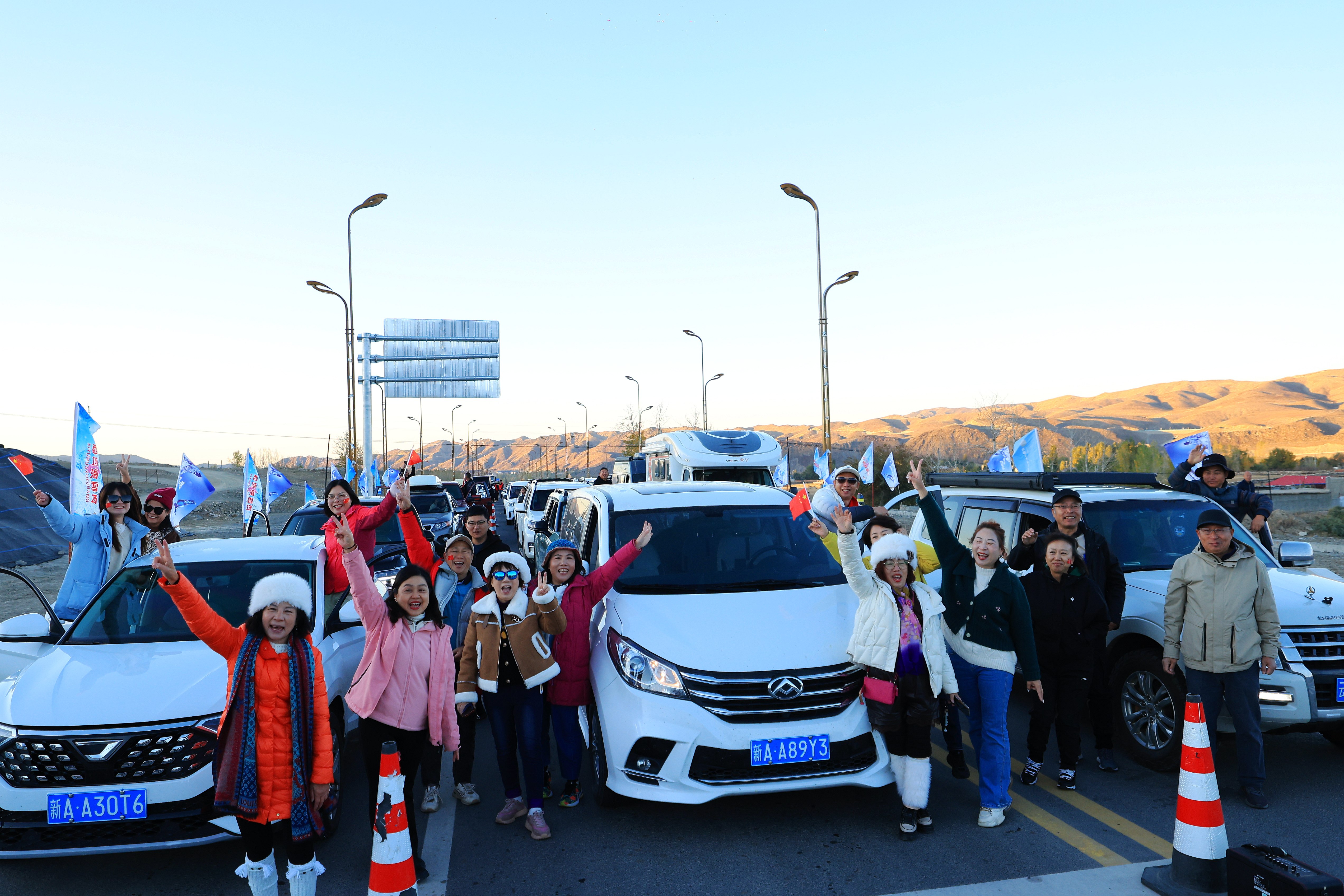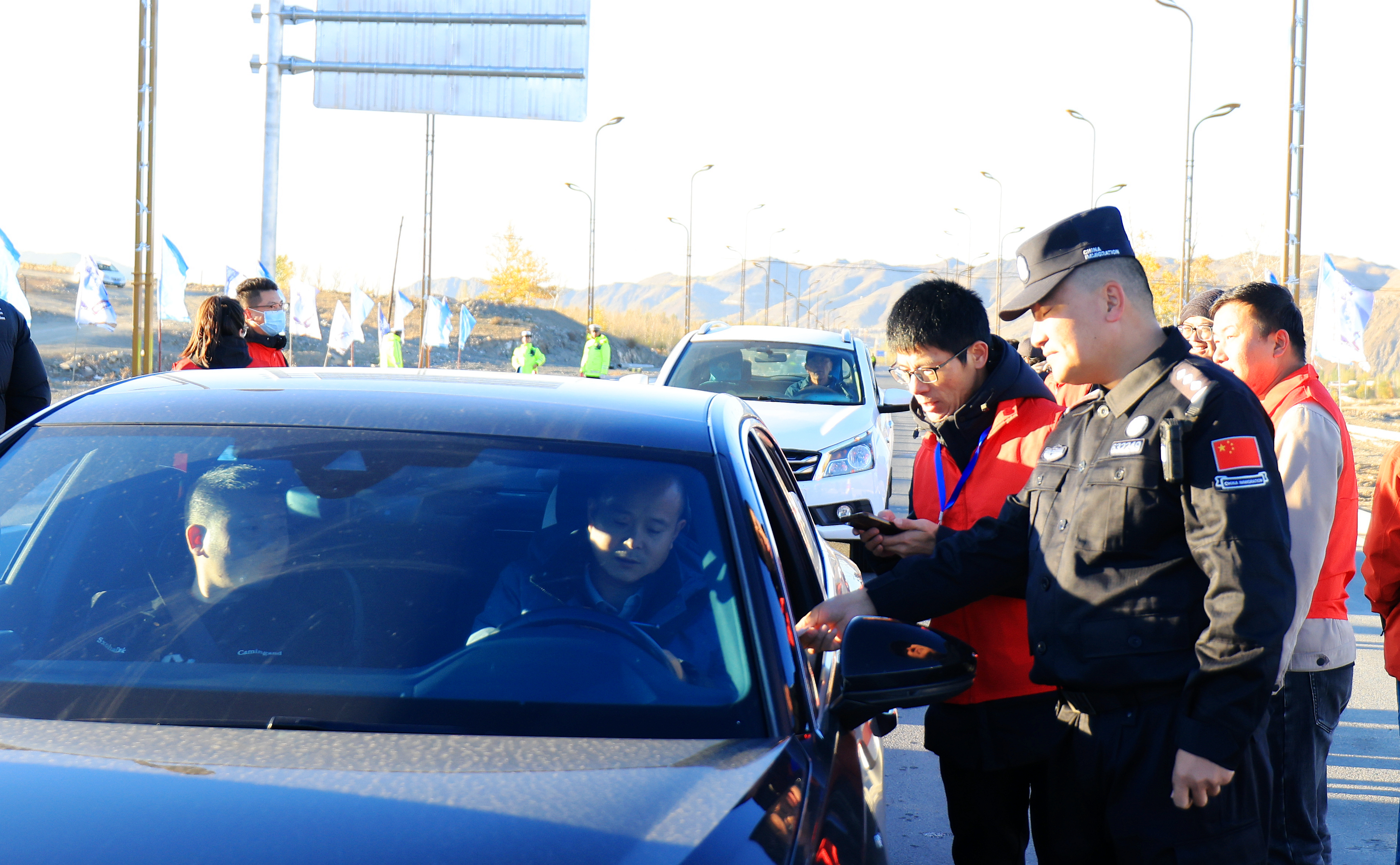 当天,自驾车辆在交警部门的指挥下,有序驶入。游客们摇下车窗,挥舞着国旗,一边向交警致意,一边齐呼:“阿禾公路,我们来了!阿勒泰,我们来了!”