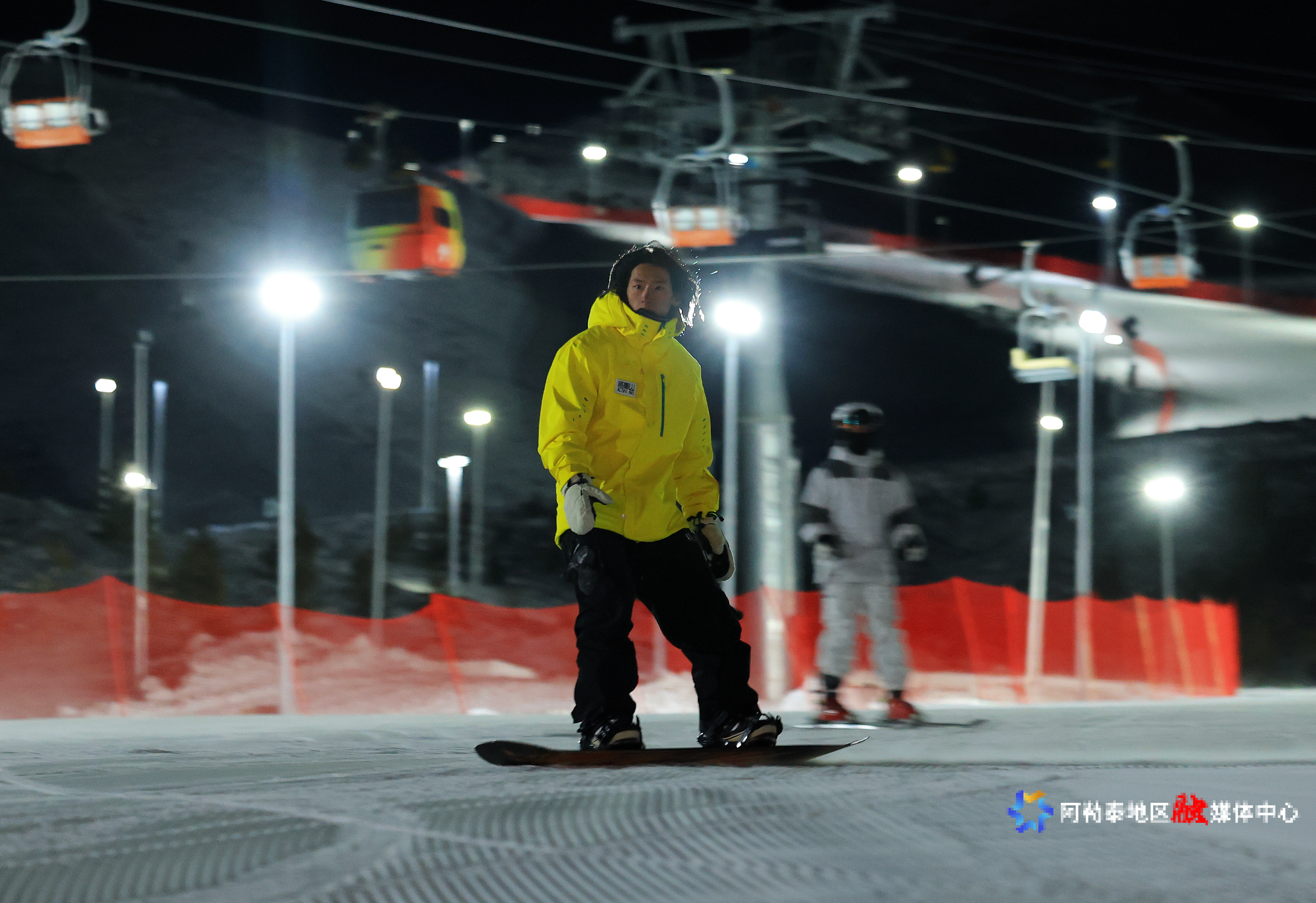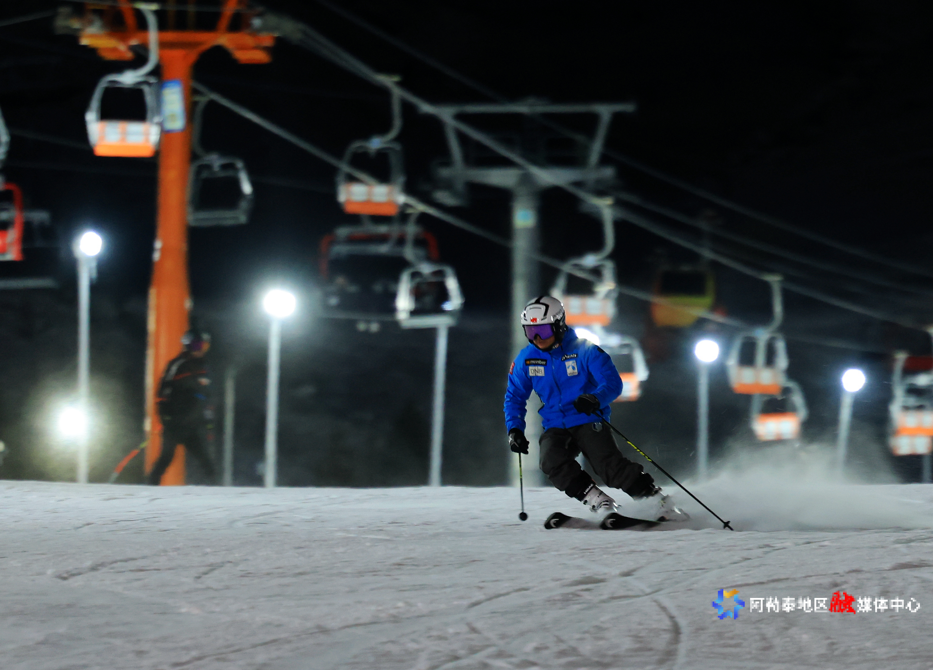 11月19日晚,阿勒泰市将军山国际滑雪度假区各地游客及滑雪爱好者体验夜间滑雪乐趣。 阿尔达克·拜斯汗 摄