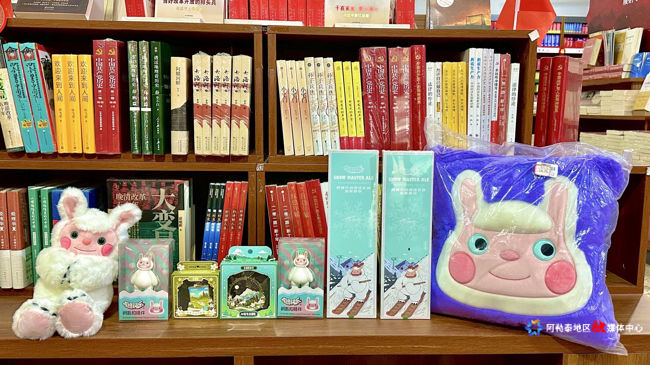 阿勒泰新闻网-阿勒泰地区融媒体中心(记者 张楠) 11月22日,记者在阿勒泰地区新华书店有限责任公司看到,文创展架区域热闹非凡,工作人员正在上新、补货。“雪怪阿乐”系列玩偶、“画卷中的阿勒泰”系列冰箱贴、“阿勒泰滑雪场”系列磁吸徽章等80余种文创产品琳琅满目。二楼的阿勒泰本土书籍图书角及阅读处,为广大市民、游客提供了丰富的文化大餐。