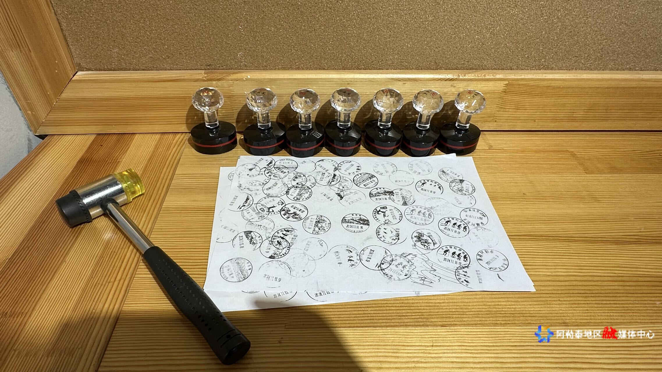 在中国邮政集团有限公司阿勒泰地区分公司五百里主题邮局,游客们正有序排队等候,为刚刚购买的明信片加盖带有阿勒泰元素的印章。该邮局设有一方印章台,陈列的印章品类极为丰富,图案均取自阿勒泰的独特风貌。