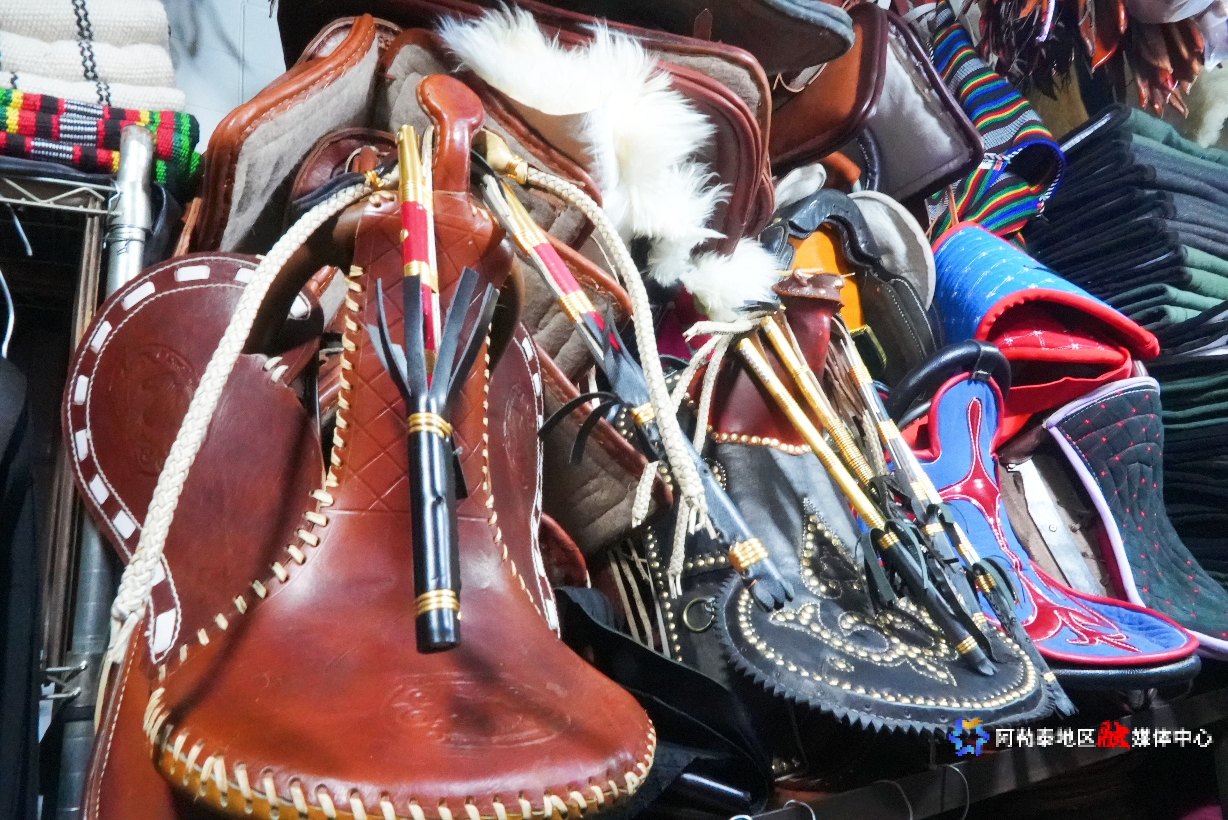 就拿大幅刺绣地毯来说,同样品质的产品,在这里只需几百元就能拿下,本地手工艺人精心制作的马鞍、马鞭、皮带等,价格在三十元至几百元之间,既能当作纪念品,又能在骑马时使用。