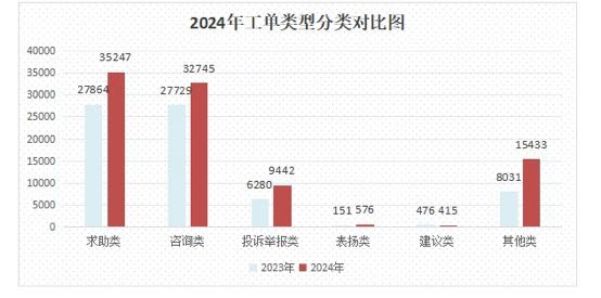 近年来,热线中心始终坚持“以人民为中心”的宗旨,聚焦企业和群众关切,提供全天候7*24小时不间断服务。2024年,累计受理群众各类诉求93858件,同比上升33.07%,接通率达97.83%。通过知识库在线解答64849件,办结工单93608件,办结率99.73%,回访满意度达95.97%。