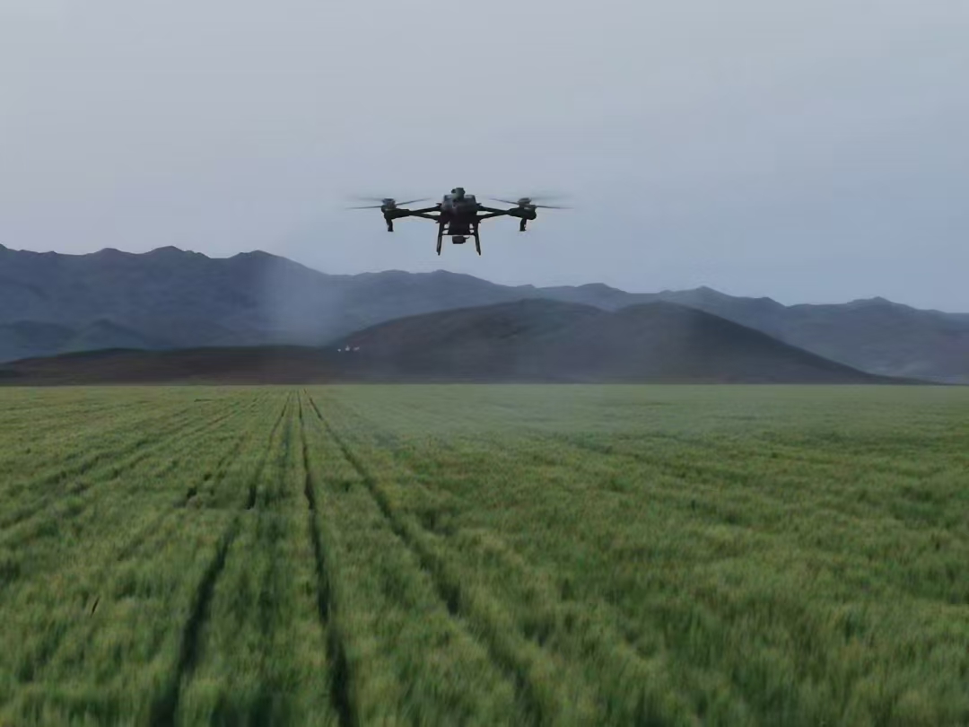 无人机在富蕴县铁买克乡开展小麦“一喷三防”服务。图片由地区农业农村局提供