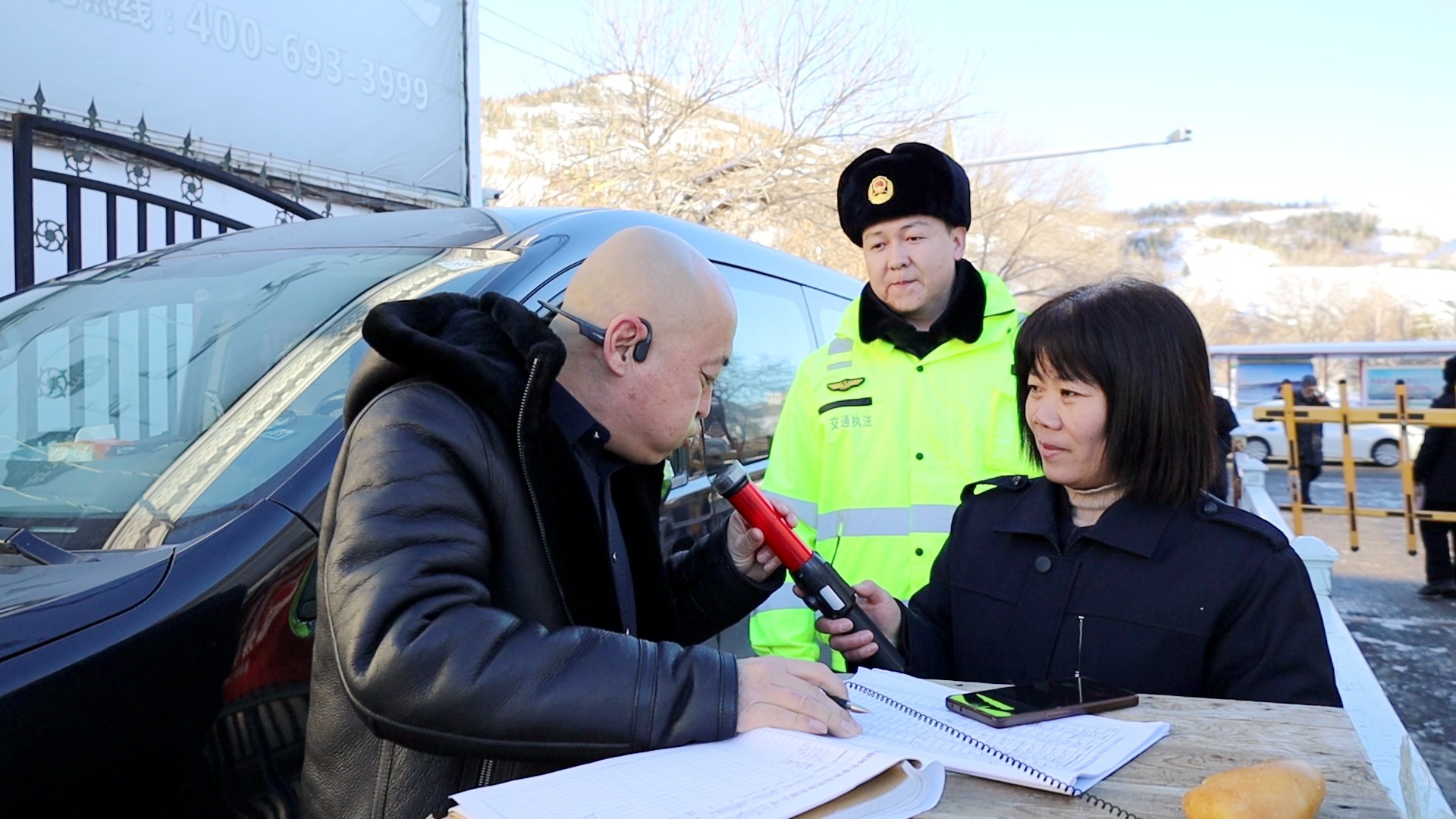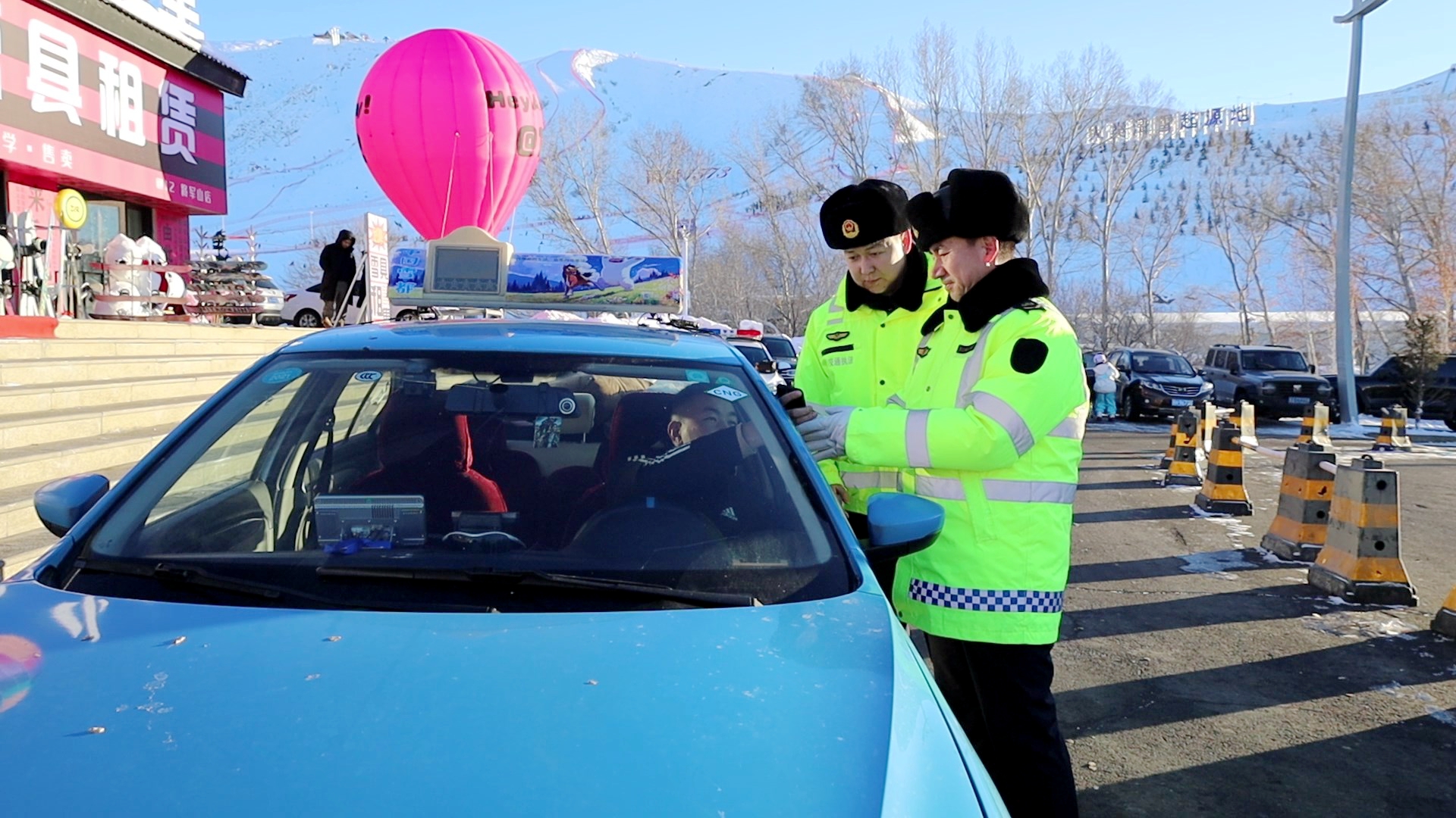 在阿勒泰将军山国际滑雪度假区内,阿勒泰市交通运输局对网约车开展监管工作,阿勒泰市交通运输综合行政执法队执法人员现场检查网约车的运营资质,督促司机们保持车辆内外清洁,严格按照规定时间上线接单,提升服务质量,为前来游玩的游客提供便利、舒适的出行体验。
