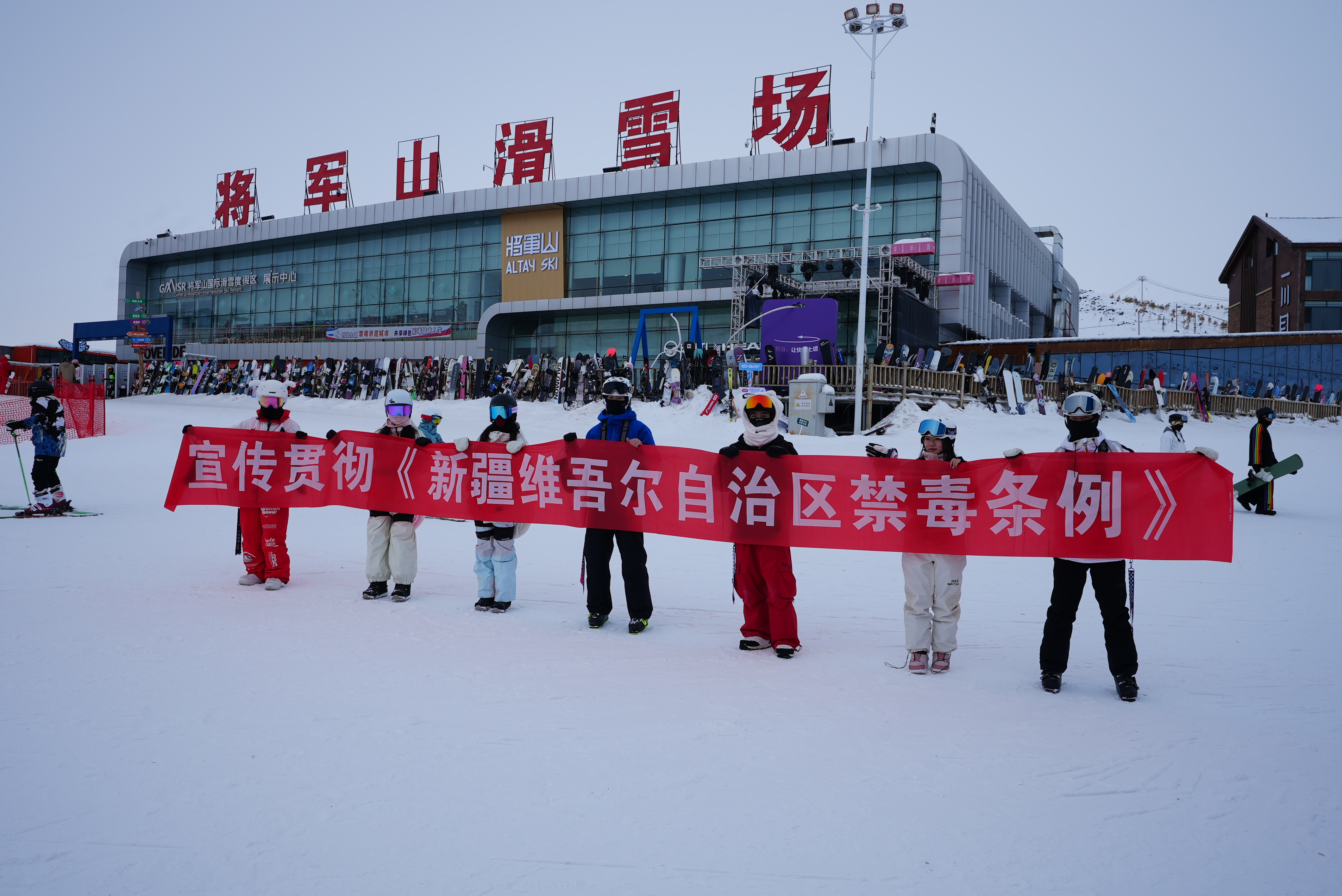 1月17日,阿勒泰地区禁毒办走进阿勒泰市将军山滑雪场,开展主题为“‘雪’与‘毒’绝缘 畅享纯净雪趣”的特色禁毒宣传活动。