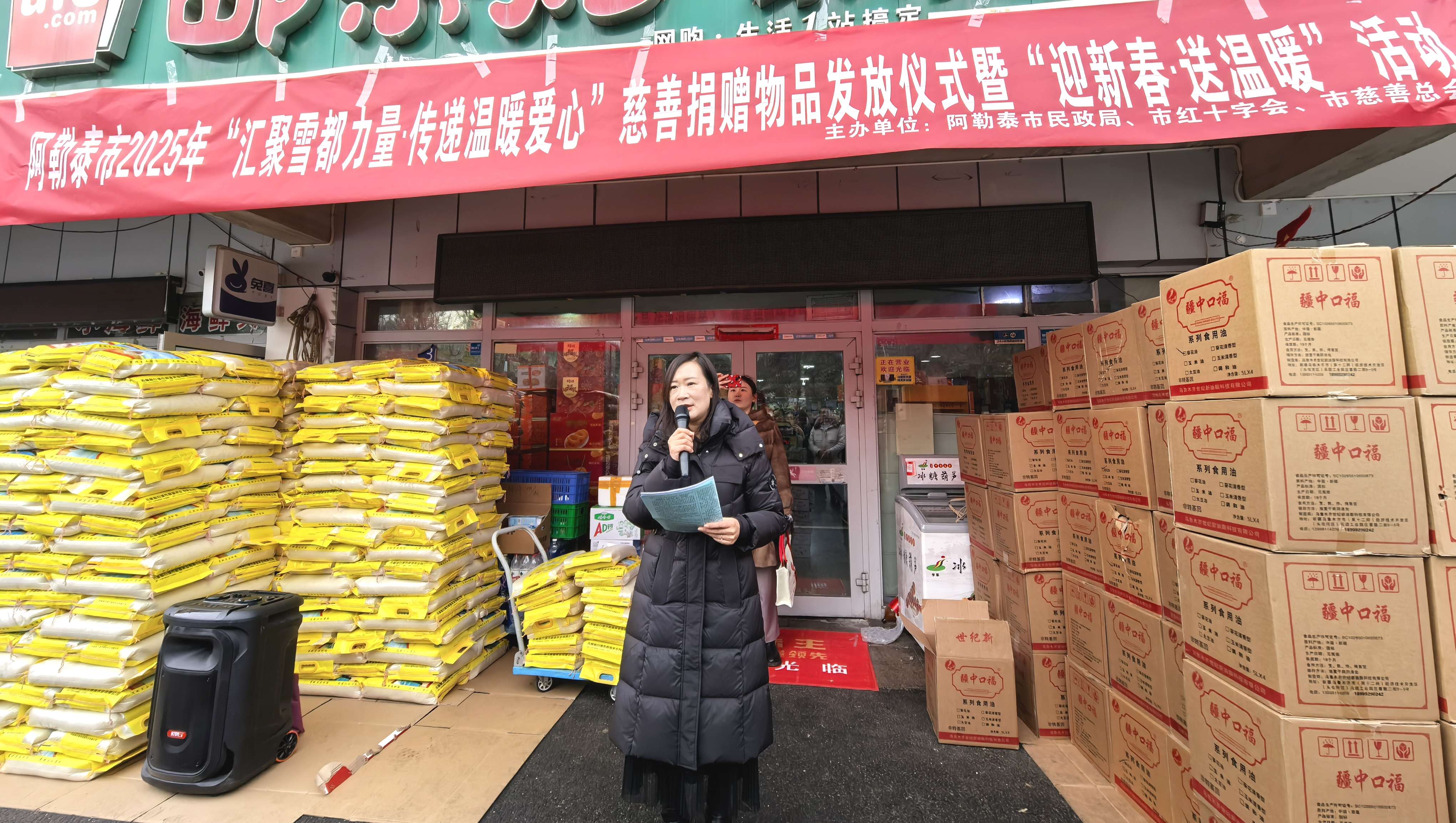 阿勒泰新闻网-阿勒泰地区融媒体中心(记者 张楠 通讯员 苑璇璇)新春佳节将至,1月22日,阿勒泰市举行“汇聚雪都力量・传递温暖爱心”慈善捐赠物品发放仪式暨 “迎新春・送温暖”活动。