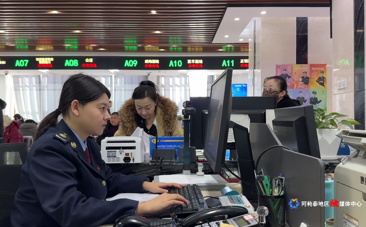 阿勒泰新闻网-阿勒泰地区融媒体中心(记者 古扎丽·阿布都热西提 阿丽娜·阿依登)2月5日,在阿勒泰地区行政服务中心大厅,各服务窗口工作人员已全部到岗,以饱满的精神状态迎接办事群众。