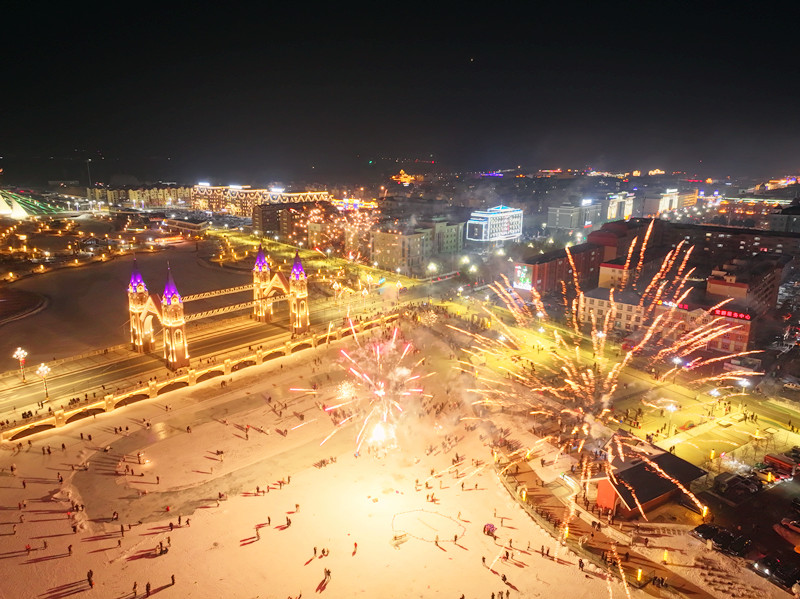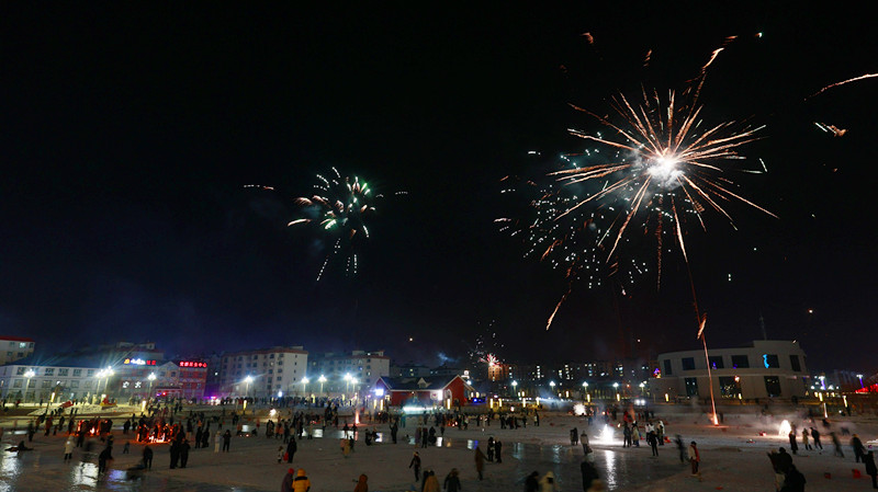 一朵朵五彩缤纷的烟花在上空竞相绽放时,有的像鲜花盛开,有的如繁星点点,有的如巨大的伞花,为来年的生活添了几分好彩头。“今天带着家人来到七彩河看烟花,特别漂亮。新的一年里,希望我的家乡越来越好,每一个人都能幸福安康。”布尔津县居民吴继虎说。