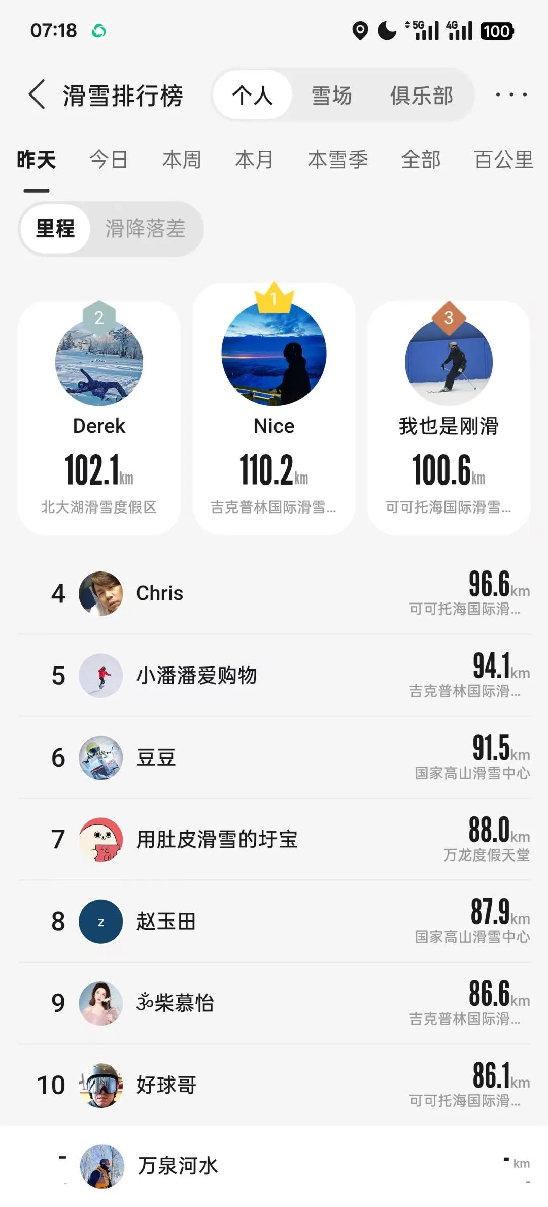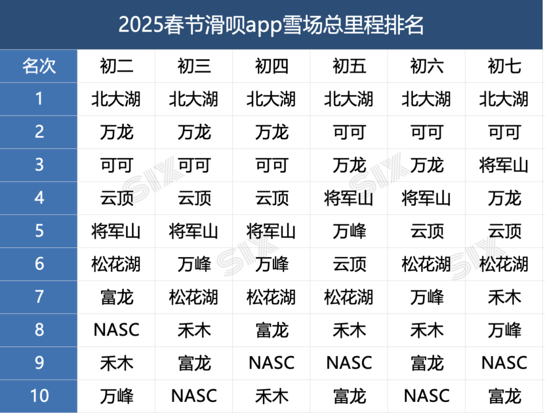 2025春节滑呗单日里程top8。图片由滑呗用户余万全 66ski提供。