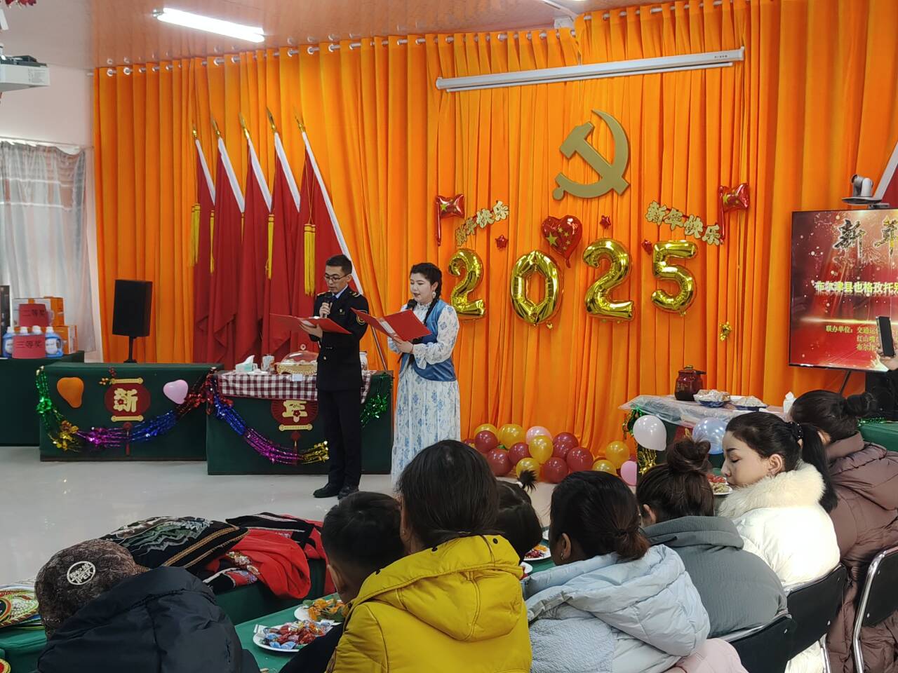在新春佳节来临之际,新疆维吾尔自治区交通运输综合行政执法局阿勒泰执法支队、中华人民共和国红山嘴口岸国际道路运输管理局、阿勒泰执法支队布尔津执法大队、吉木乃执法大队、布尔津县也格孜托别乡克孜勒托盖村联合举办了“群众村晚”暨民族团结一家亲系列文体活动。