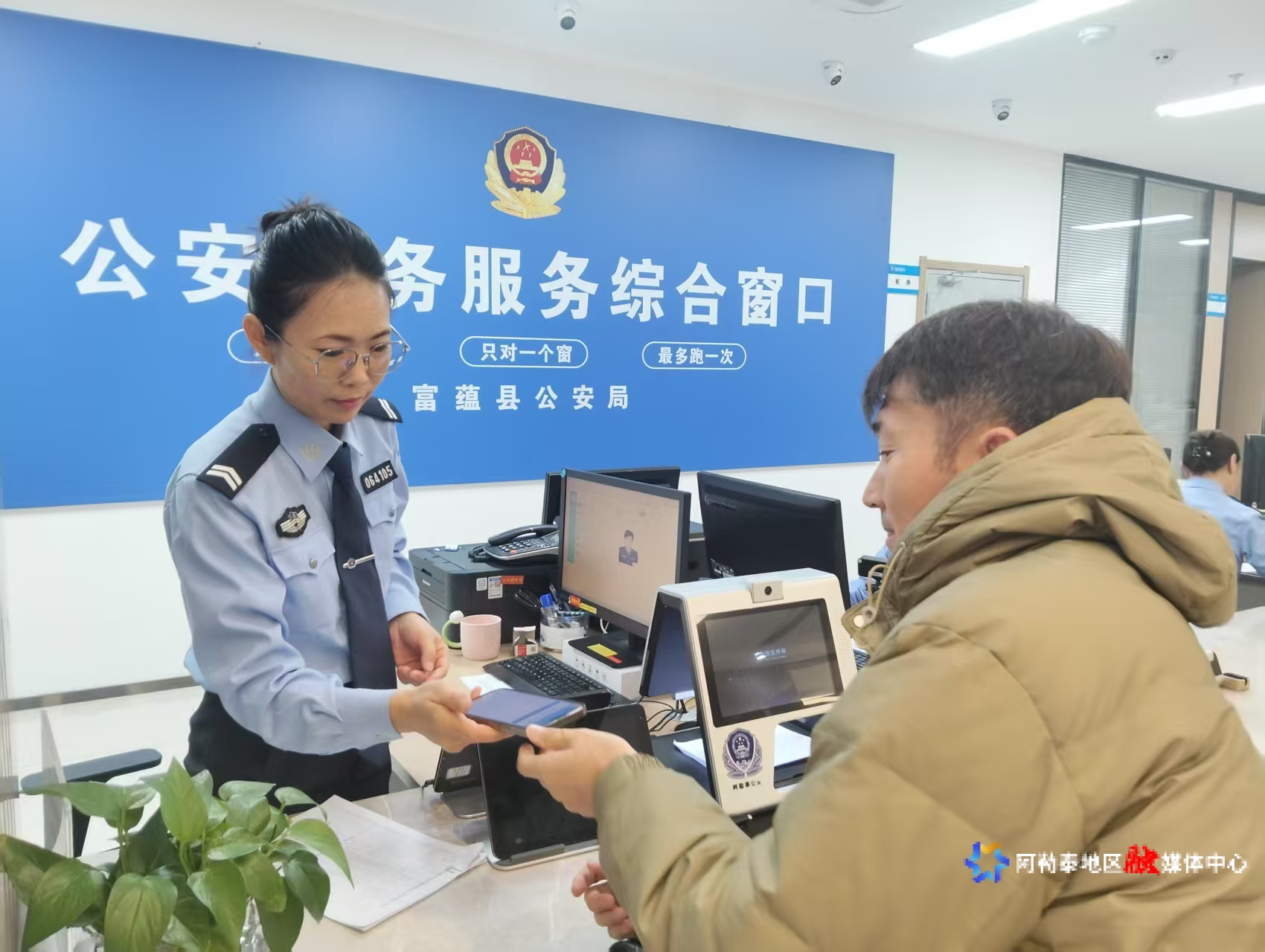 阿勒泰新闻网-阿勒泰地区融媒体中心(记者 古丽娜 通讯员 迪娜·司马义)“真是太感谢你们了,服务贴心又高效!”2月23日,在富蕴县政务服务中心出入境窗口,民辅警们正忙着引导群众办理业务,热情周到的服务赢得大家一致好评。