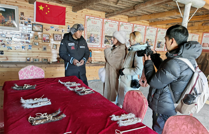 2月24日上午,“网红新疆四季行”媒体团走进阿勒泰市,探访了自治区级非物质文化遗产代表性项目古老毛皮滑雪板制作技艺代表性传承人斯兰别克·沙合什的工作坊。斯兰别克·沙合什热情接待了媒体团,并生动讲述了古老毛皮滑雪板背后的故事。他详细介绍了毛皮滑雪板的选材和制作工艺,媒体团成员们近距离观察了毛皮滑雪板的制作过程,深刻感受到阿勒泰作为“人类滑雪起源地”的深厚文化底蕴。