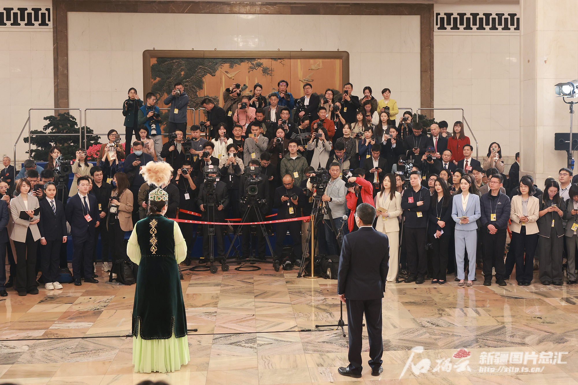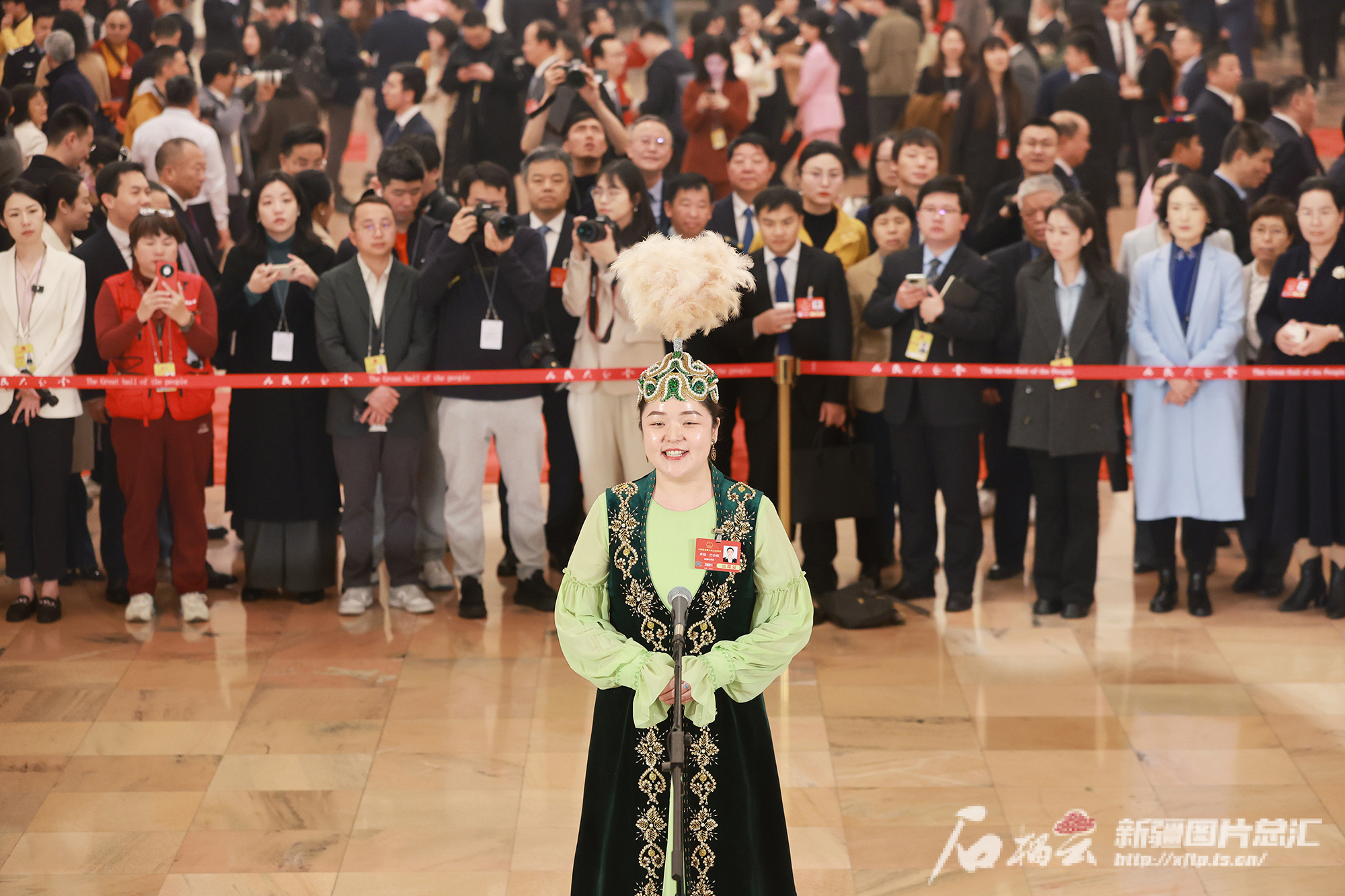 3月11日,在疆全国人大代表卓娅·巴合提走上“代表通道”接受媒体采访。石榴云/新疆日报记者 崔志坚摄